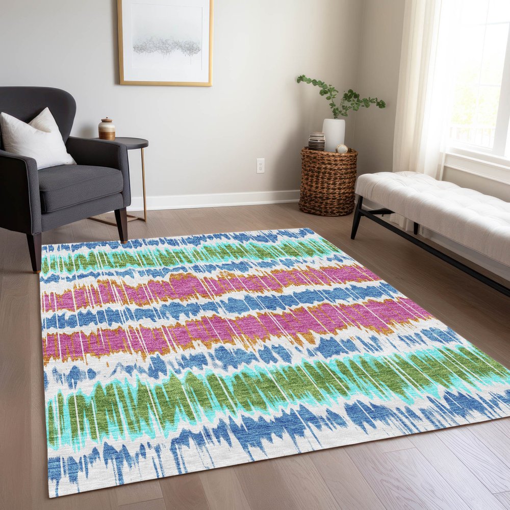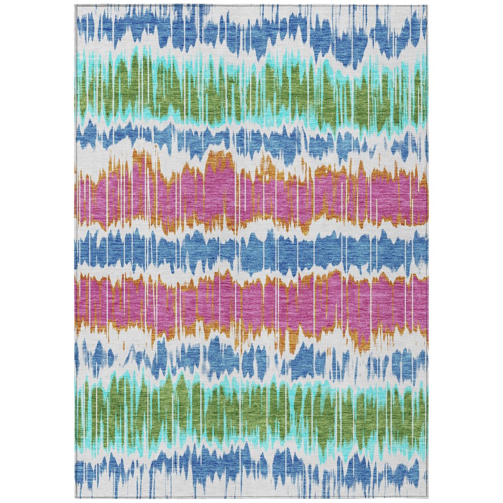 Set an inviting tone in your space with this 9-foot x 12-foot white blue and pink striped washable indoor outdoor area rug. This rectangle shaped rug features a striped design that will work well both indoors or out. A classic shape marries with good looking design for your living room, hall, bedroom, porch, patio, or poolside. Ideal for outdoor spaces or high traffic areas with kids and pets, this rug is made from heavy duty polyester that is stain resistant to help repel water, dirt, and stains. Versatile in use, durable, and easy to maintain, this rug is an ideal solution to add a decorative and inviting touch to your indoor or outdoor space. 108-inch h x 144-inch w x 0.19-inch d.
