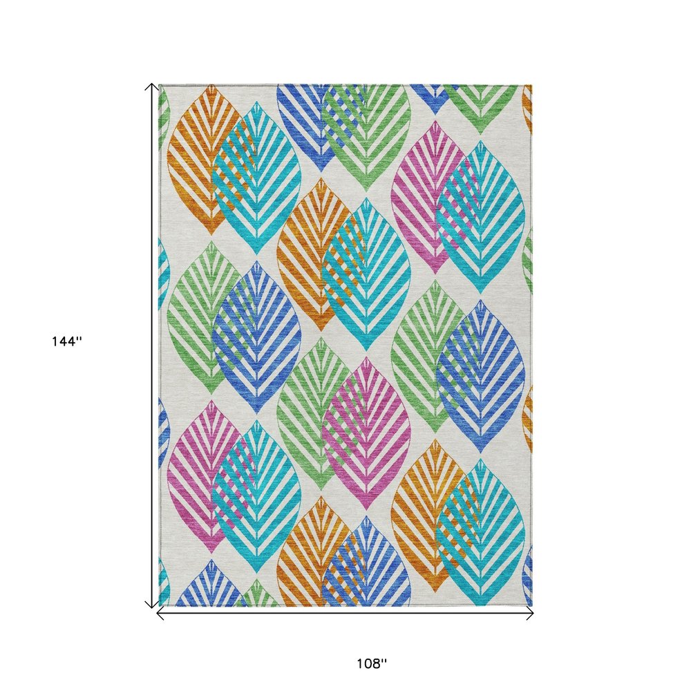 9' X 12' White Orange And Blue Floral Washable Indoor Outdoor Area Rug