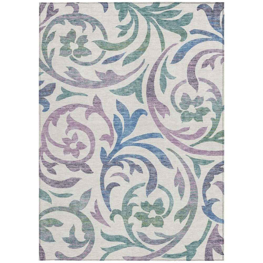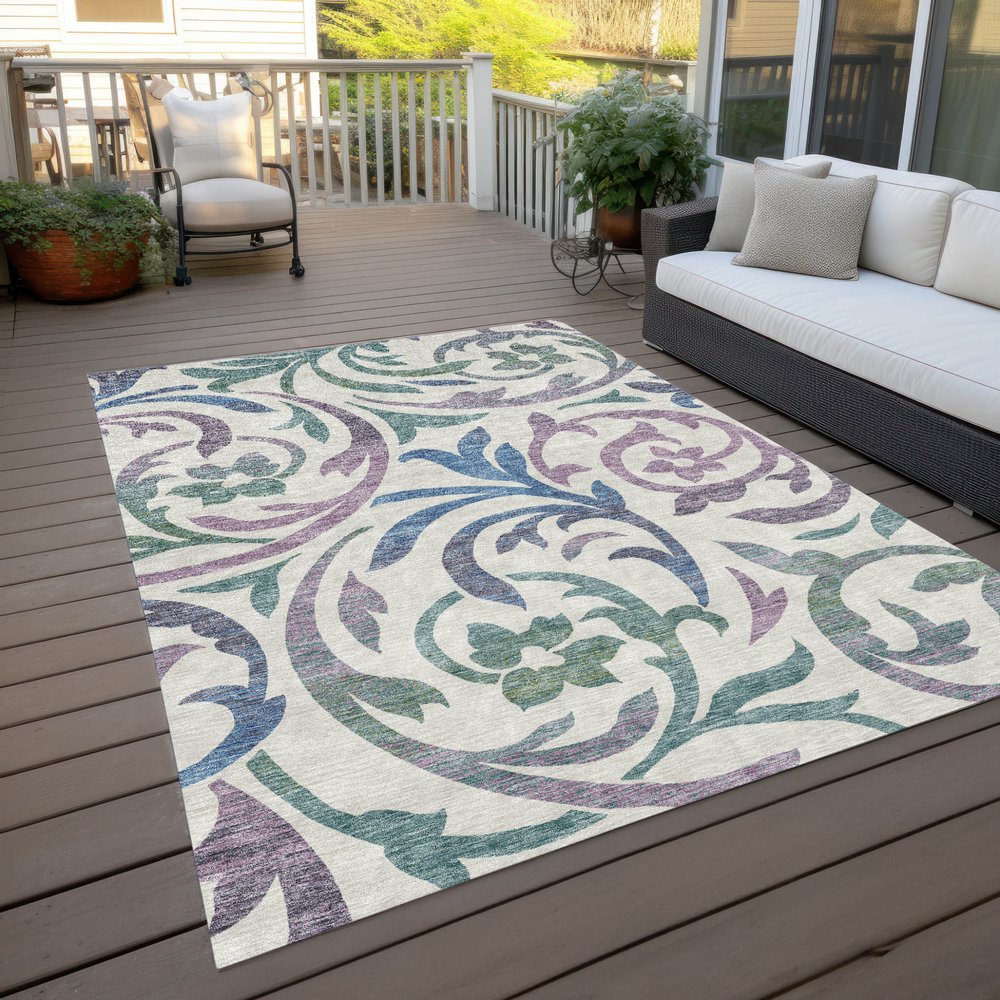 Set an inviting tone in your space with this 9-foot x 12-foot white purple and sage floral washable indoor outdoor area rug. This rectangle shaped rug features a floral design that will work well both indoors or out. A classic shape marries with good looking design for your living room, hall, bedroom, porch, patio, or poolside. Ideal for outdoor spaces or high traffic areas with kids and pets, this rug is made from heavy duty polyester that is stain resistant to help repel water, dirt, and stains. Versatile in use, durable, and easy to maintain, this rug is an ideal solution to add a decorative and inviting touch to your indoor or outdoor space. 108-inch h x 144-inch w x 0.19-inch d.
