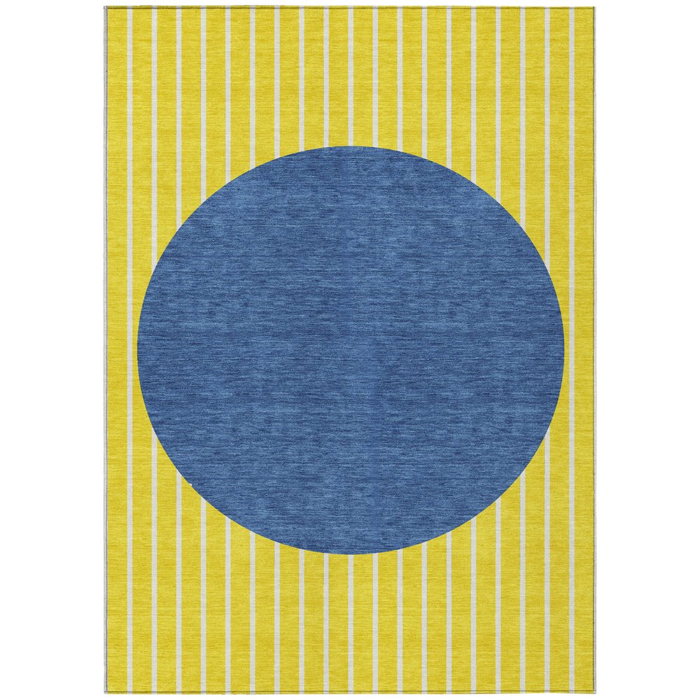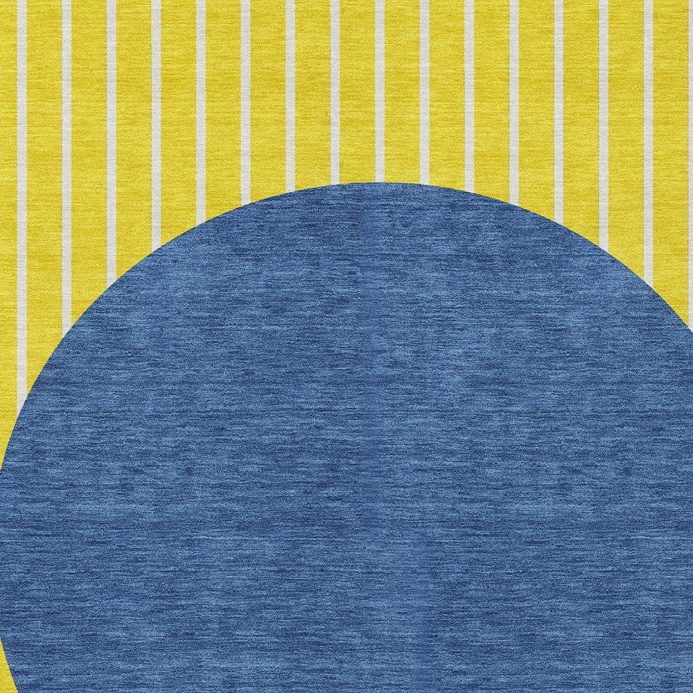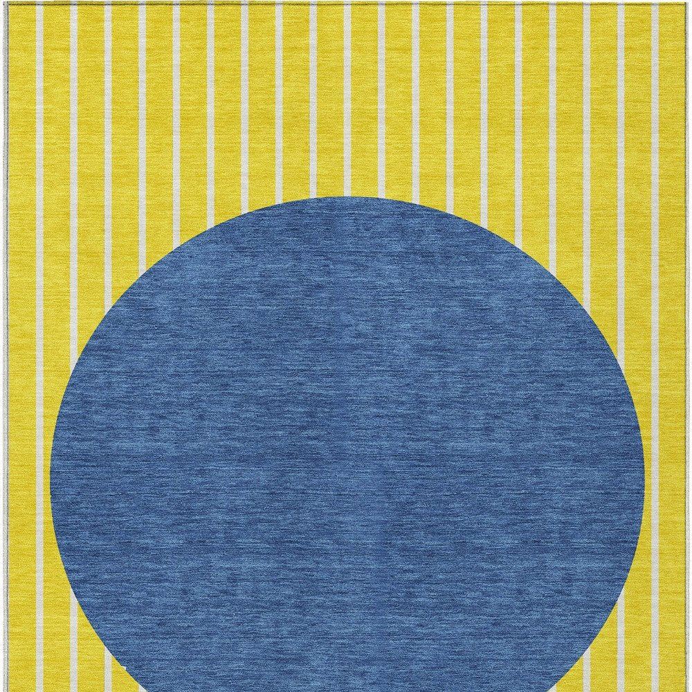 This 9-foot x 12-foot yellow and blue striped washable indoor outdoor area rug, is a great way to add warmth to a room. This rectangle shaped rug features a striped design that will work well both indoors or out. A classic shape marries with good looking design for your living room, hall, bedroom, porch, patio, or poolside. Ideal for outdoor spaces or high traffic areas with kids and pets, this rug is made from heavy duty polyester that is stain resistant to help repel water, dirt, and stains. Versatile in use, durable, and easy to maintain, this rug is an ideal solution to add a decorative and inviting touch to your indoor or outdoor space. 108-inch h x 144-inch w x 0.19-inch d.