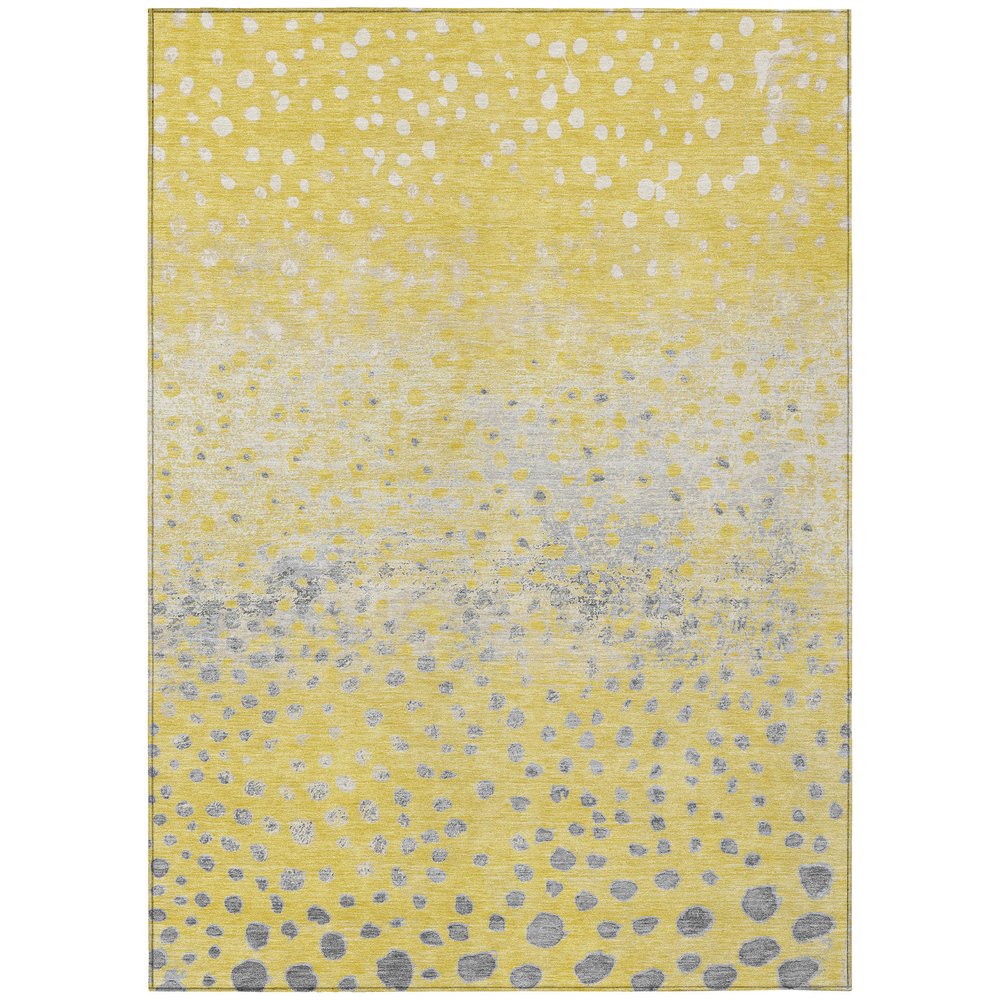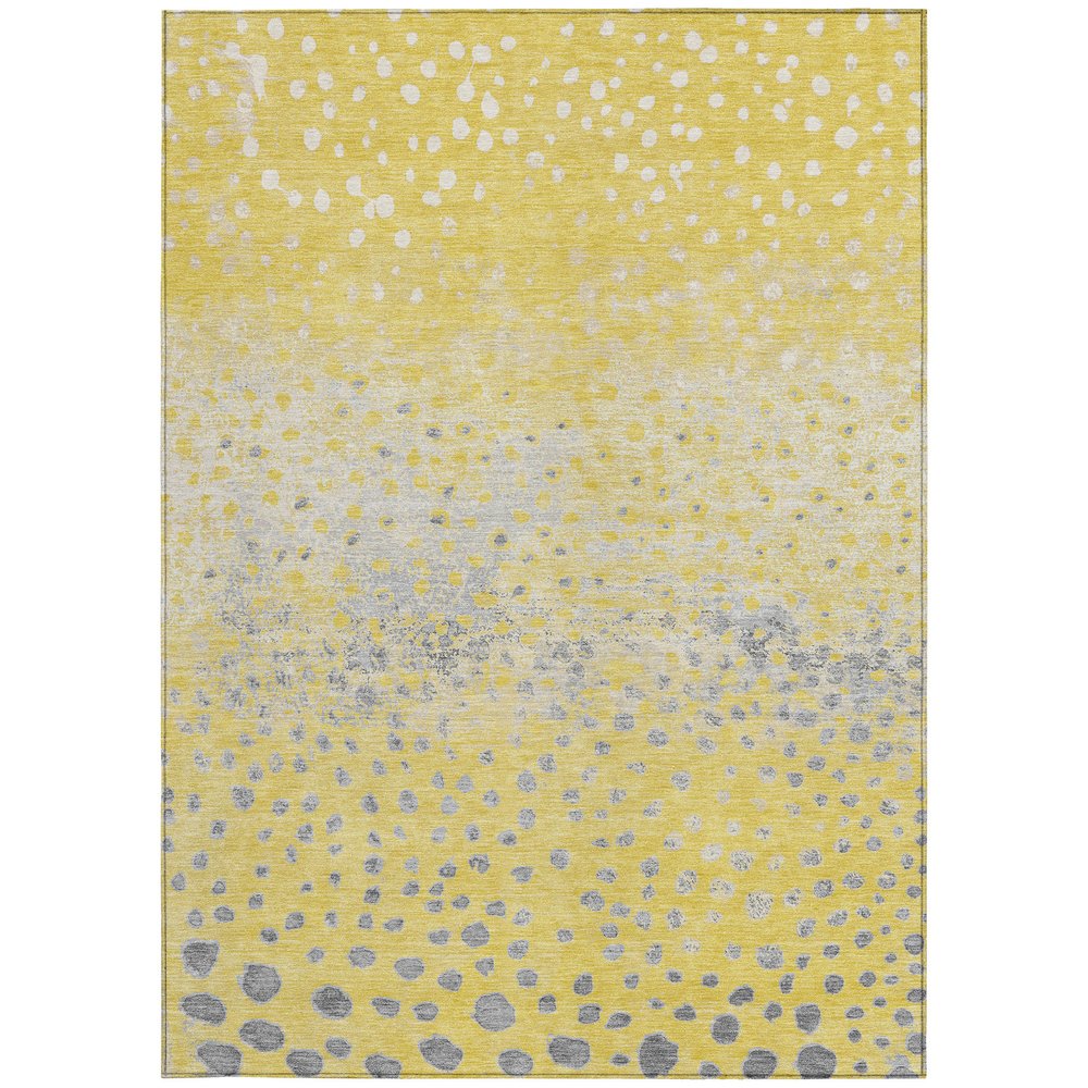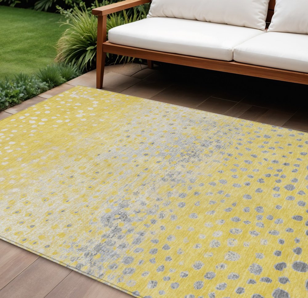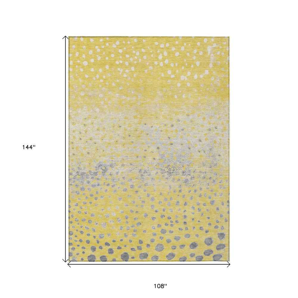 9' X 12' Yellow And Gold Abstract Washable Indoor Outdoor Area Rug