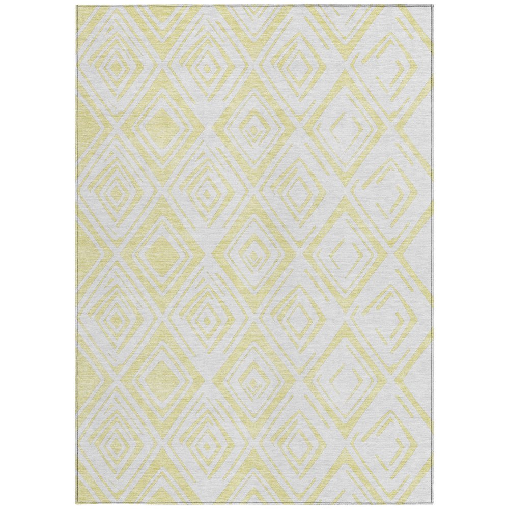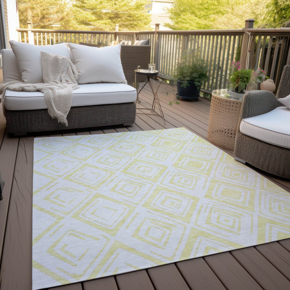 Add some artistry to your room with this 9-foot x 12-foot yellow and ivory geometric washable indoor outdoor area rug. This rectangle shaped rug features a geometric design that will work well both indoors or out. A classic shape marries with a good-looking design for your living room, hall, bedroom, porch, patio, or poolside. Ideal for outdoor spaces or high traffic areas with kids and pets, this rug is made from heavy duty polyester that is stain resistant to help repel water, dirt, and stains. Makes a great way to dress up your patio, porch, or poolside, but also works well as a durable and easy to maintain option in the kitchen, family room, or mudroom. 108-inch h x 144-inch w x 0.19-inch d.