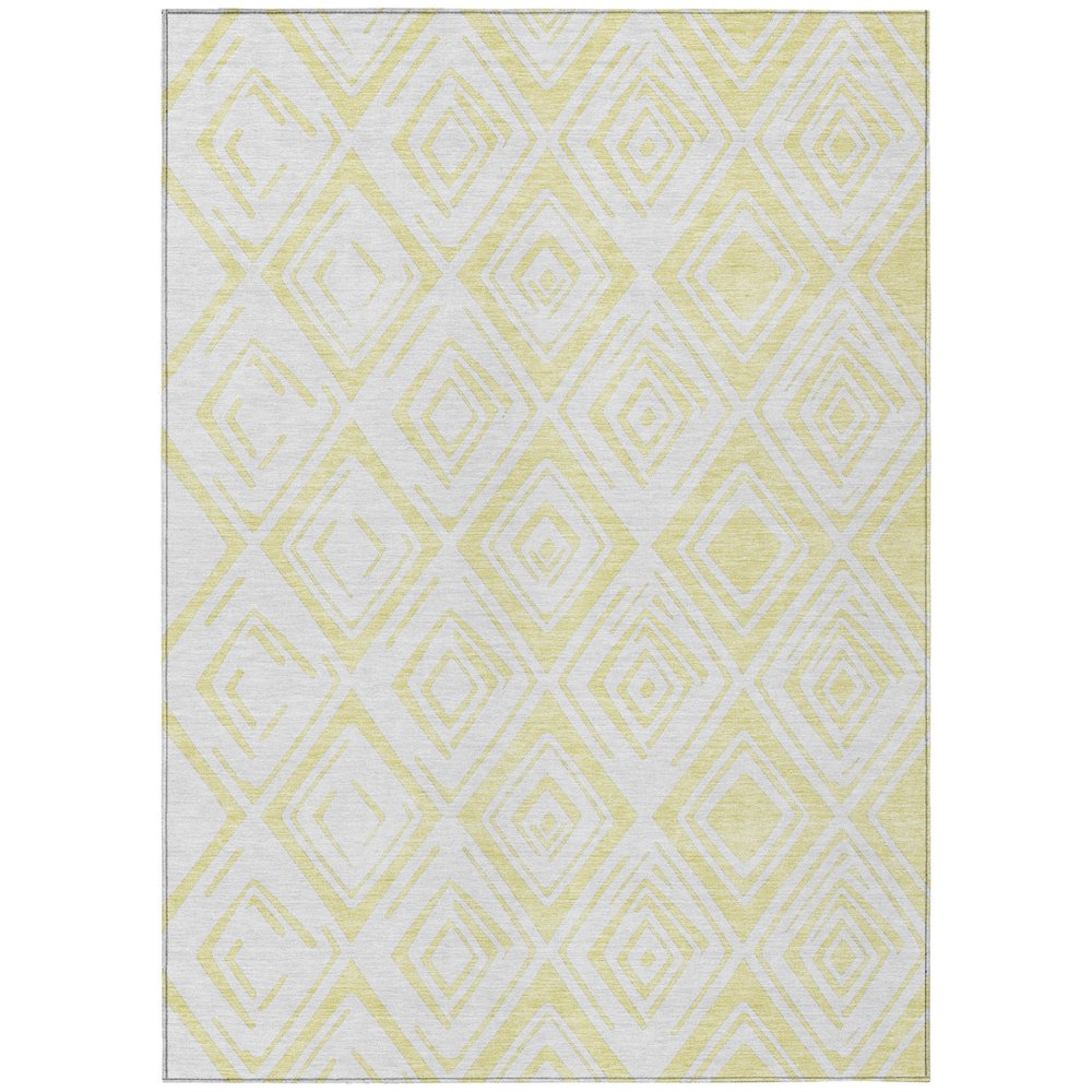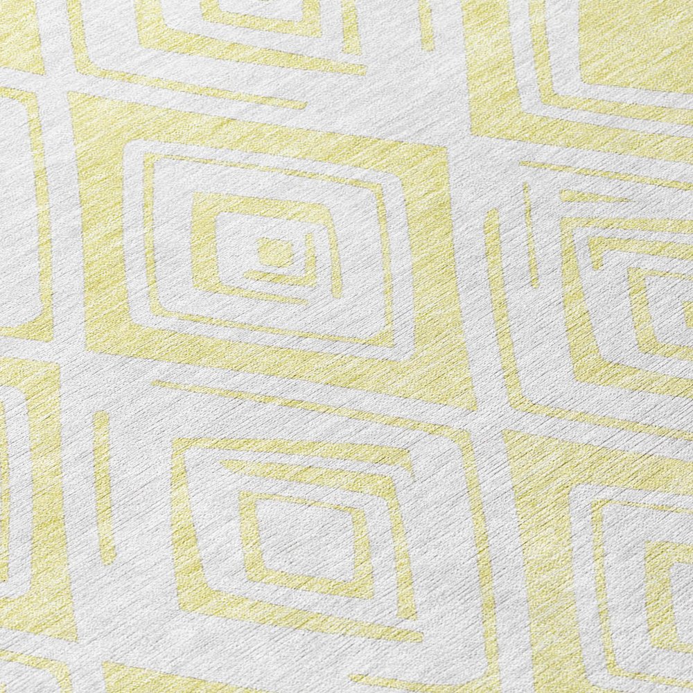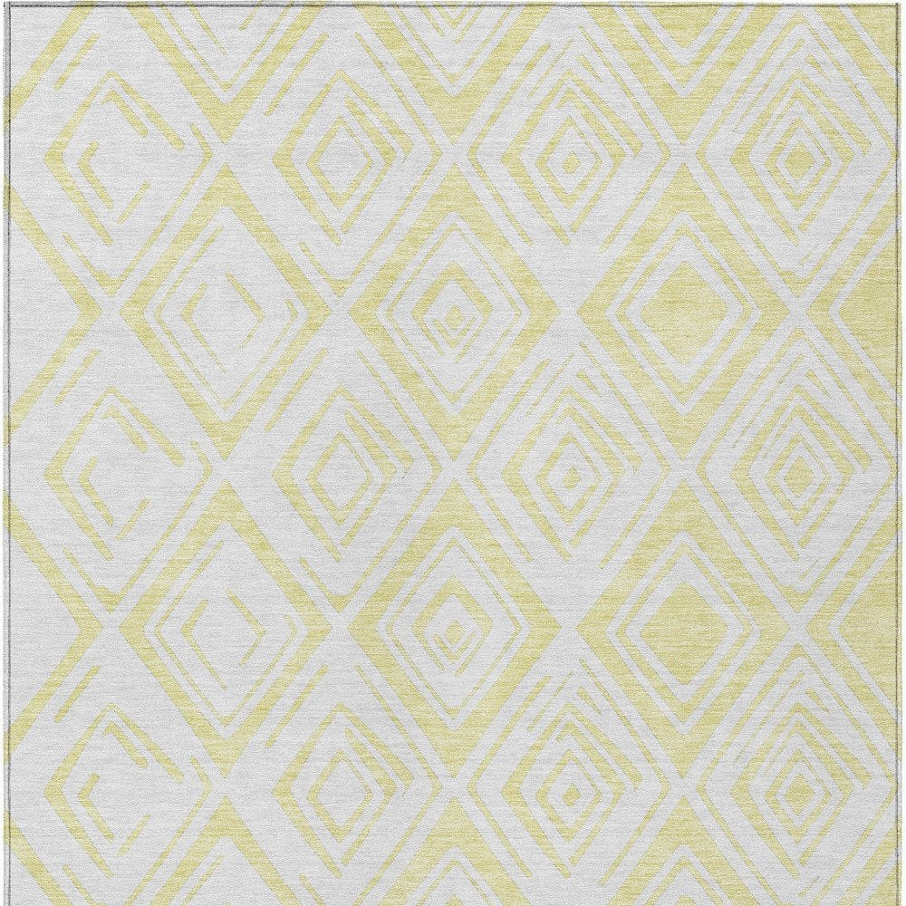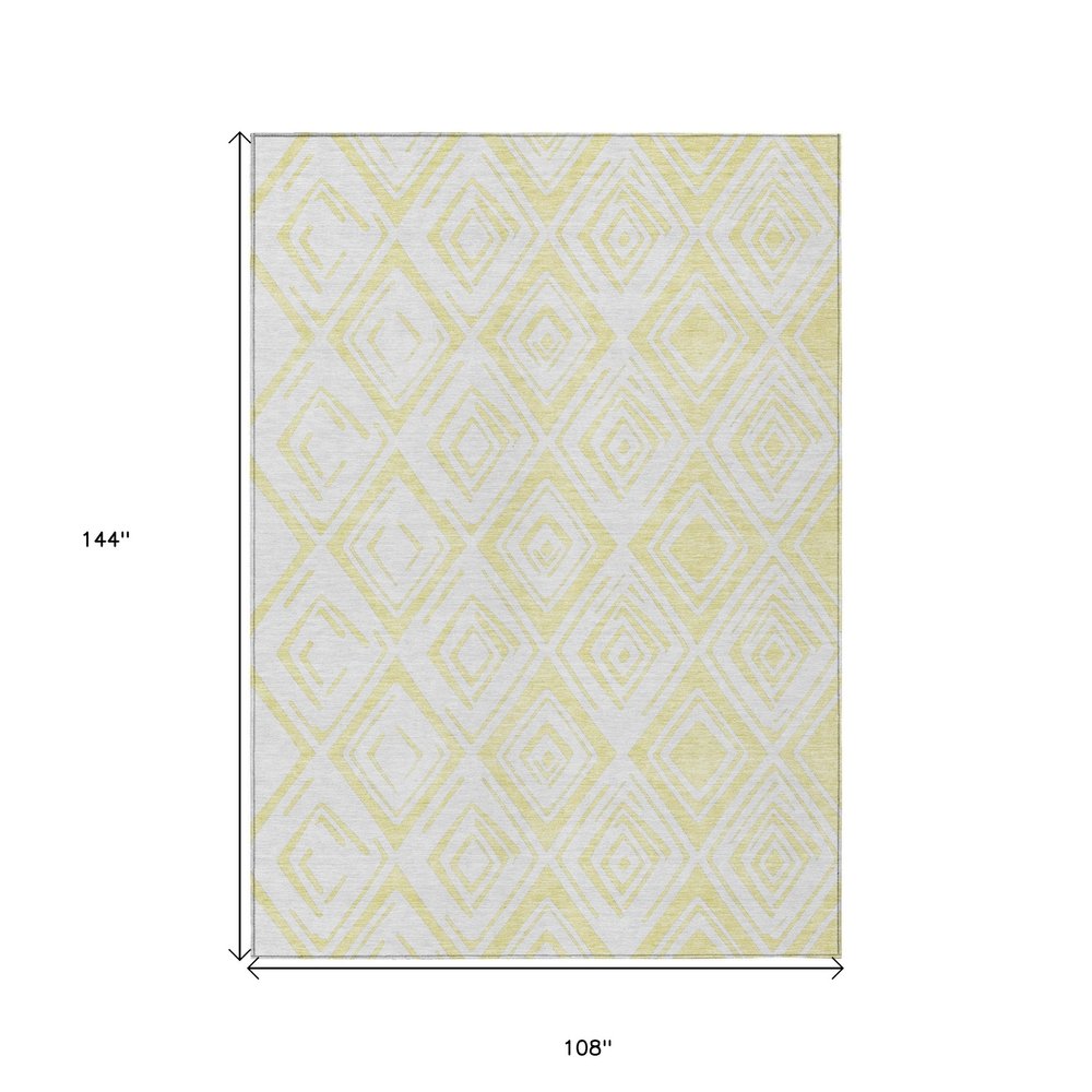 9' X 12' Yellow And Ivory Geometric Washable Indoor Outdoor Area Rug