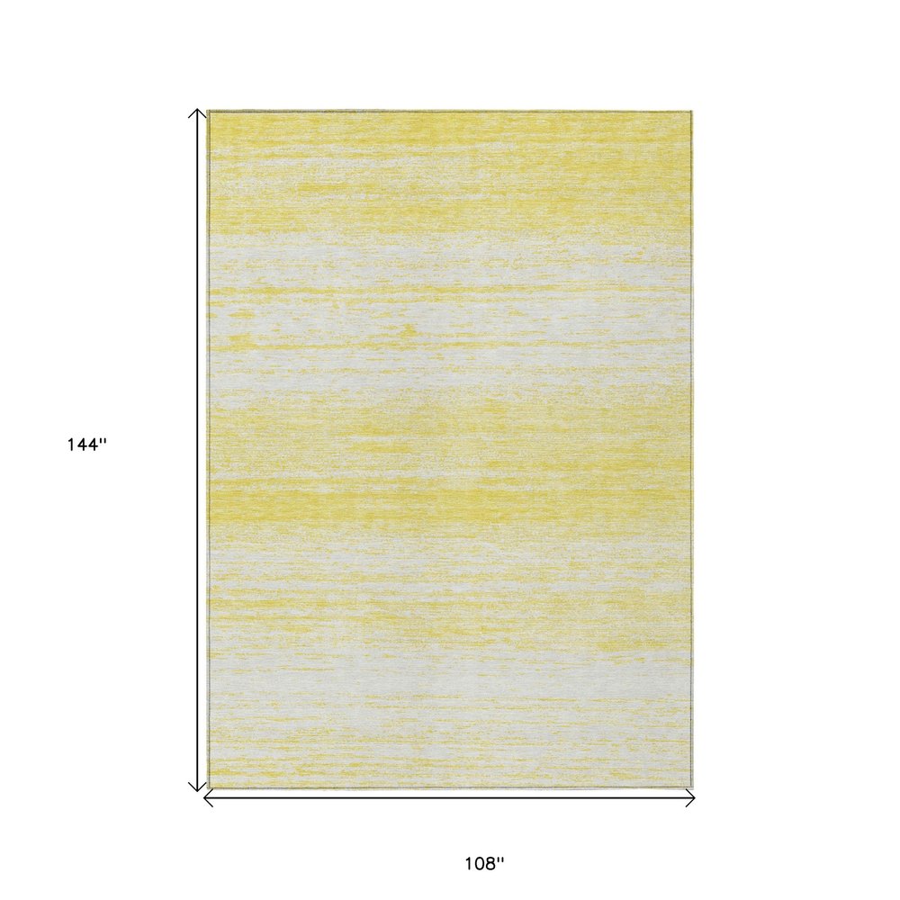 9' X 12' Yellow And Ivory Striped Washable Indoor Outdoor Area Rug