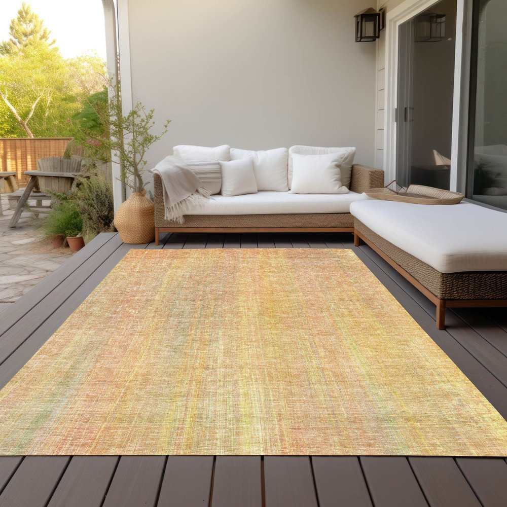 Add some artistry to your room with this 9-foot x 12-foot yellow and orange striped washable stain resistant nonskid indoor outdoor area rug. This rectangle shaped rug features a striped design in yellow and orange to give it visual interest. A classic shape marries with a good-looking design for your space ideal for spaces with kids and pets, this rug is stain resistant to help repel stains and spilled liquids. Place this area rug against a hardwood or tile floor and it will enliven your living space with style and sophistication. 108-inch H x 144-inch W x 0.19-inch D