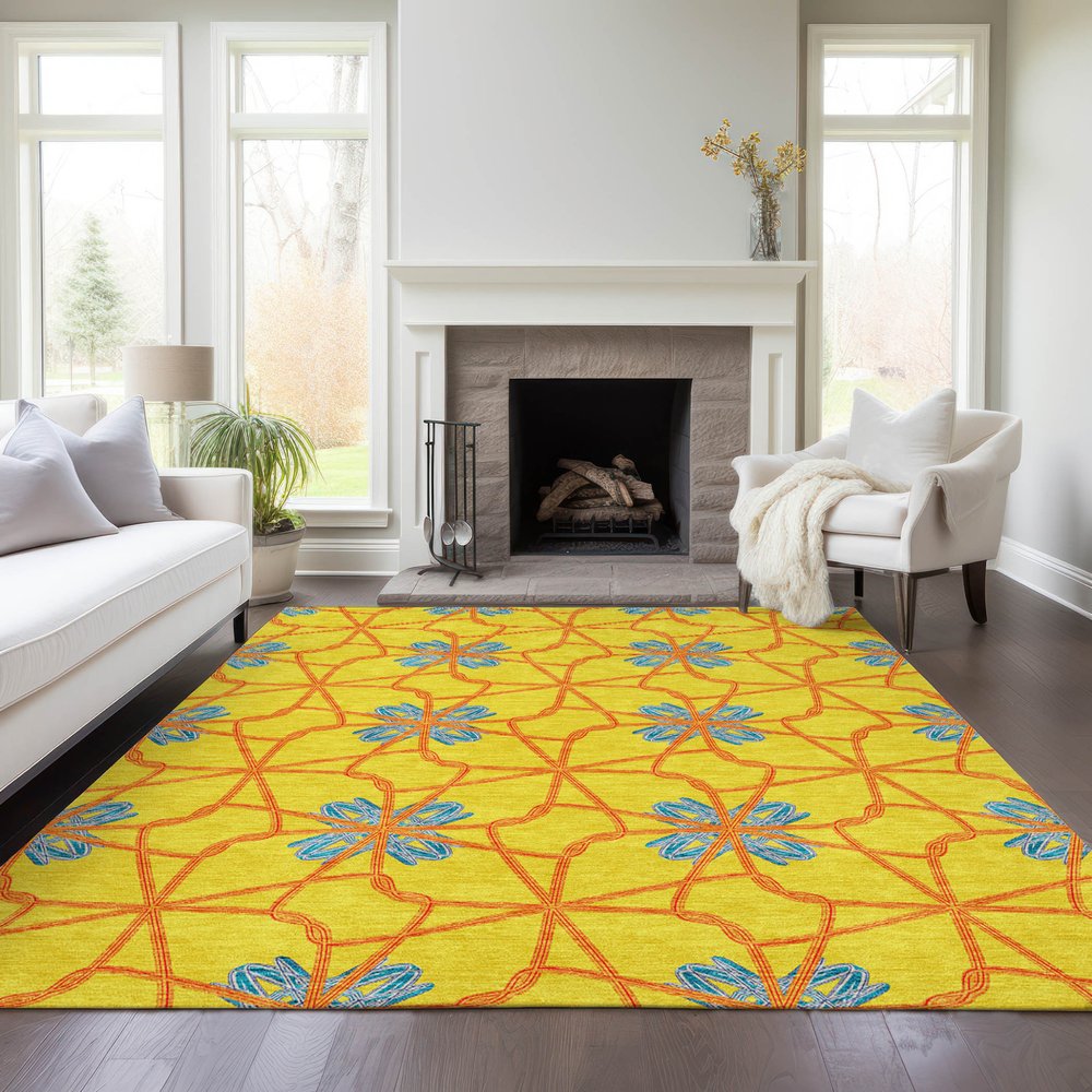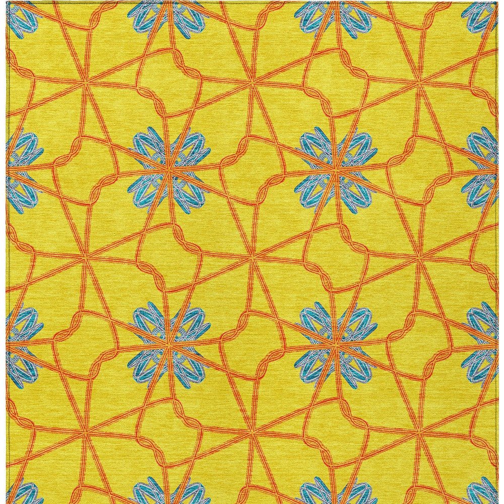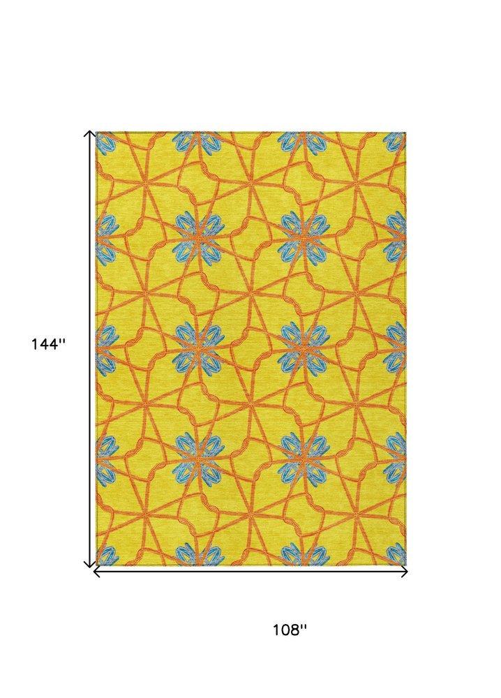 9' X 12' Yellow And Teal Blue Geometric Washable Indoor Outdoor Area Rug