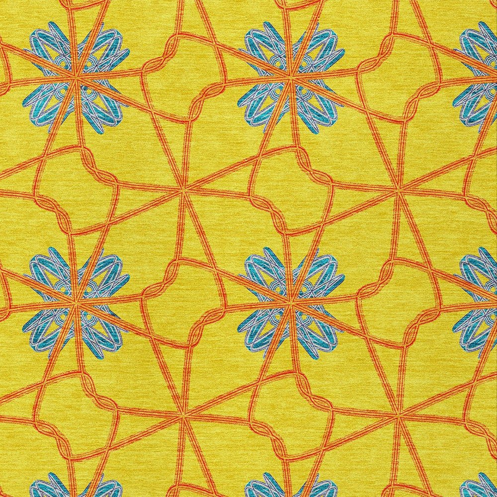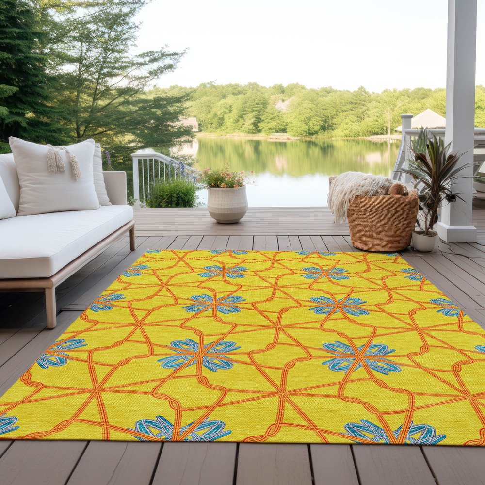 Add great coloration and comfortable texture to your space with this 9-foot x 12-foot yellow and teal blue geometric washable indoor outdoor area rug. This rectangle shaped rug features a geometric design that will work well both indoors or out. A classic shape marries with good looking design for your living room, hall, bedroom, porch, patio, or poolside. Ideal for outdoor spaces or high traffic areas with kids and pets, this rug is made from heavy duty polyester that is stain resistant to help repel water, dirt, and stains. Versatile in use, durable, and easy to maintain, this rug is an ideal solution to add a decorative and inviting touch to your indoor or outdoor space. 108-inch h x 144-inch w x 0.19-inch d.