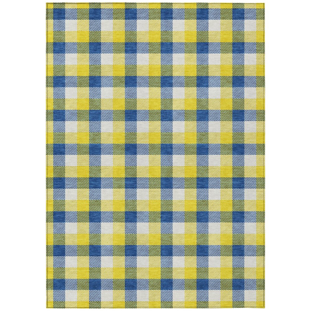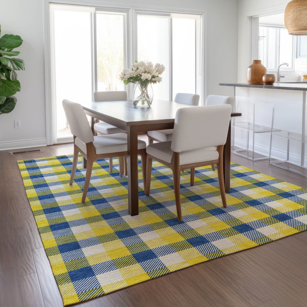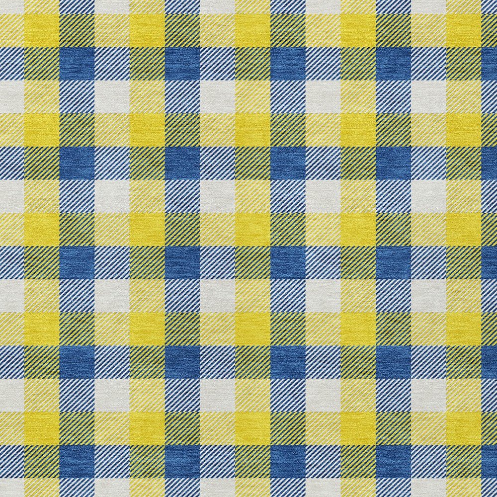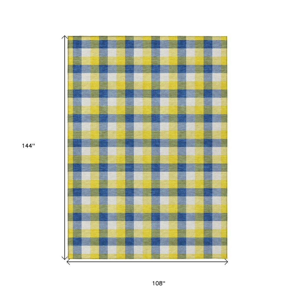 9' X 12' Yellow Blue And Beige Plaid Washable Indoor Outdoor Area Rug