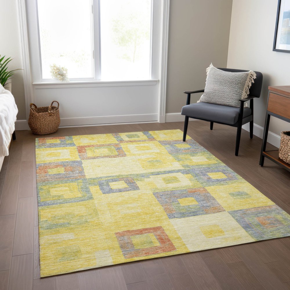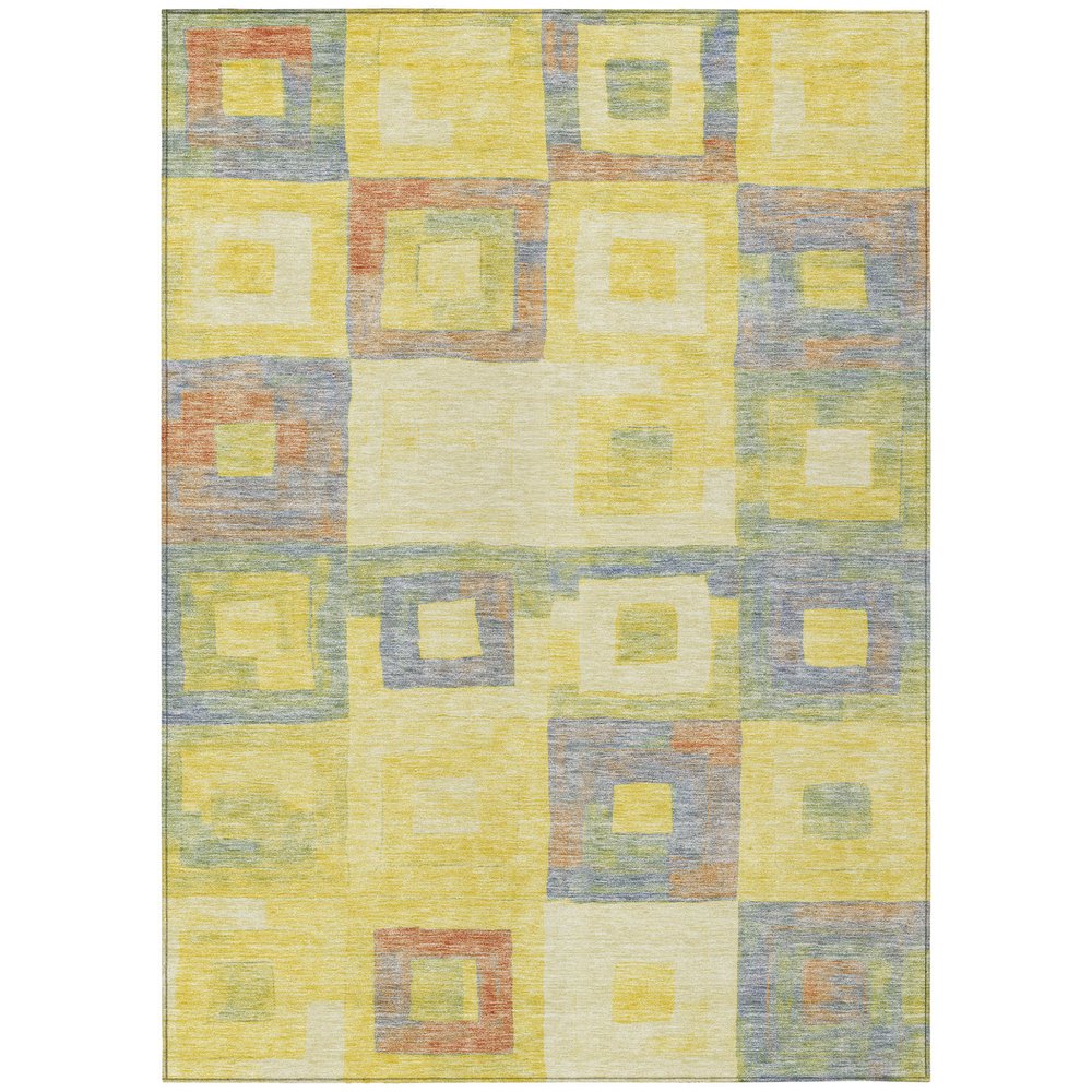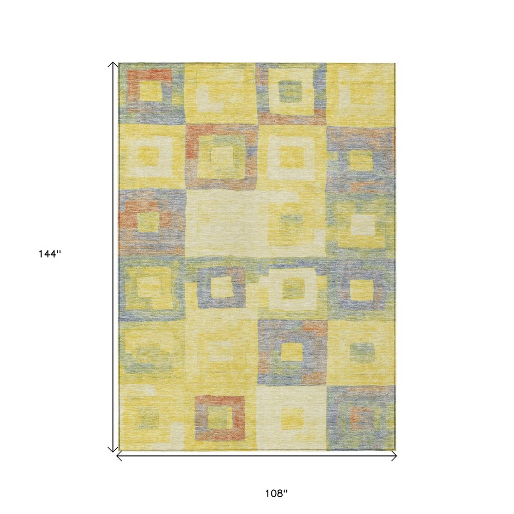 9' X 12' Yellow Blue And Terra Cotta Geometric Washable Indoor Outdoor Area Rug