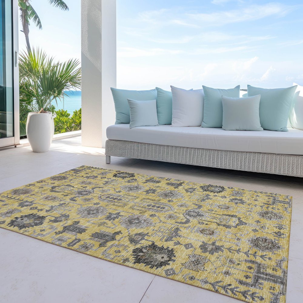 Add great coloration and comfortable texture to your space with this 9-foot x 12-foot yellow gray and charcoal oriental washable indoor outdoor area rug. This rectangle shaped rug features an oriental design that will work well both indoors or out. A classic shape marries with a good-looking design for your living room, hall, bedroom, porch, patio, or poolside. Ideal for outdoor spaces or high traffic areas with kids and pets, this rug is made from heavy duty polyester that is stain resistant to help repel water, dirt, and stains. Versatile in use, durable, and easy to maintain, this rug is an ideal solution to add a decorative and inviting touch to your indoor or outdoor space. 108-inch h x 144-inch w x 0.19-inch d.