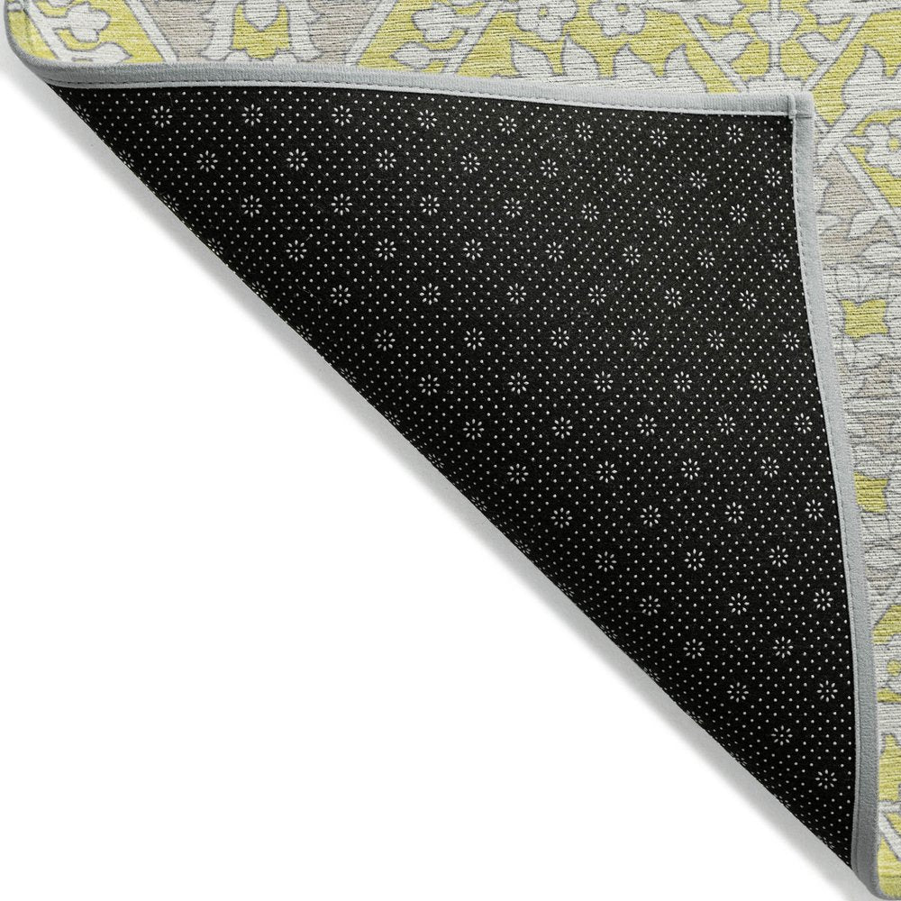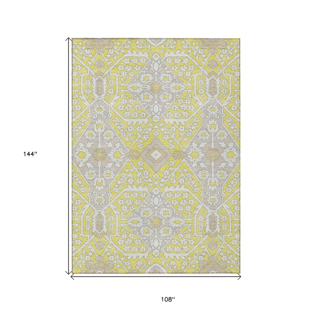 9' X 12' Yellow Ivory And Beige Floral Washable Indoor Outdoor Area Rug