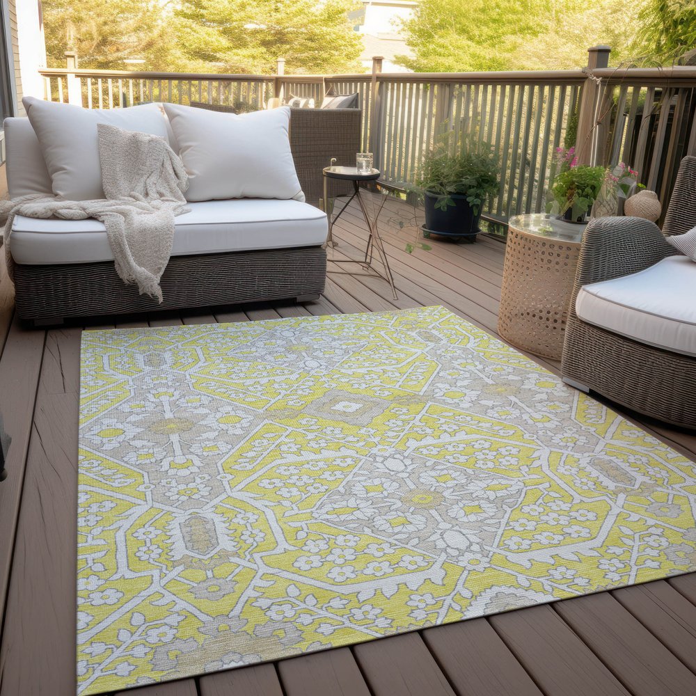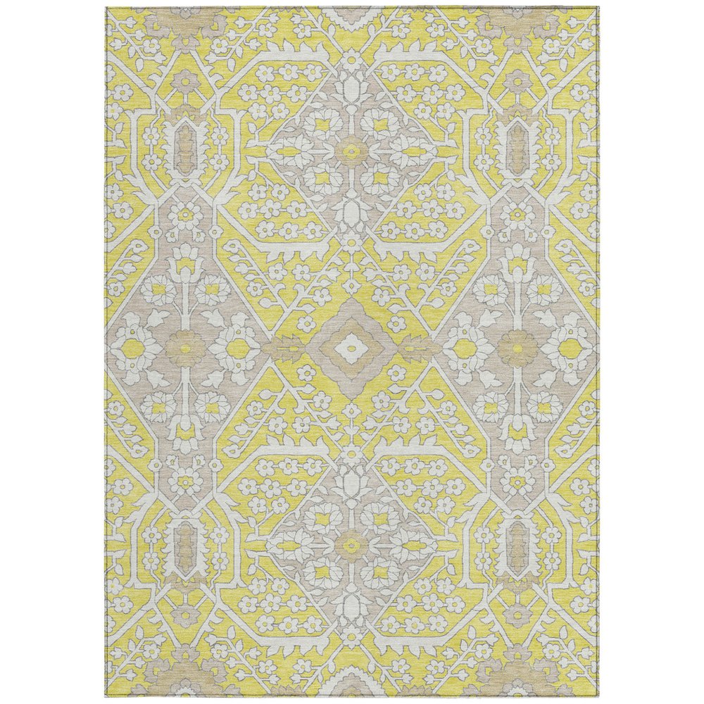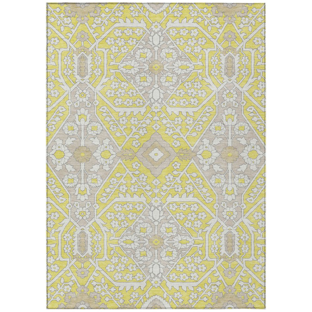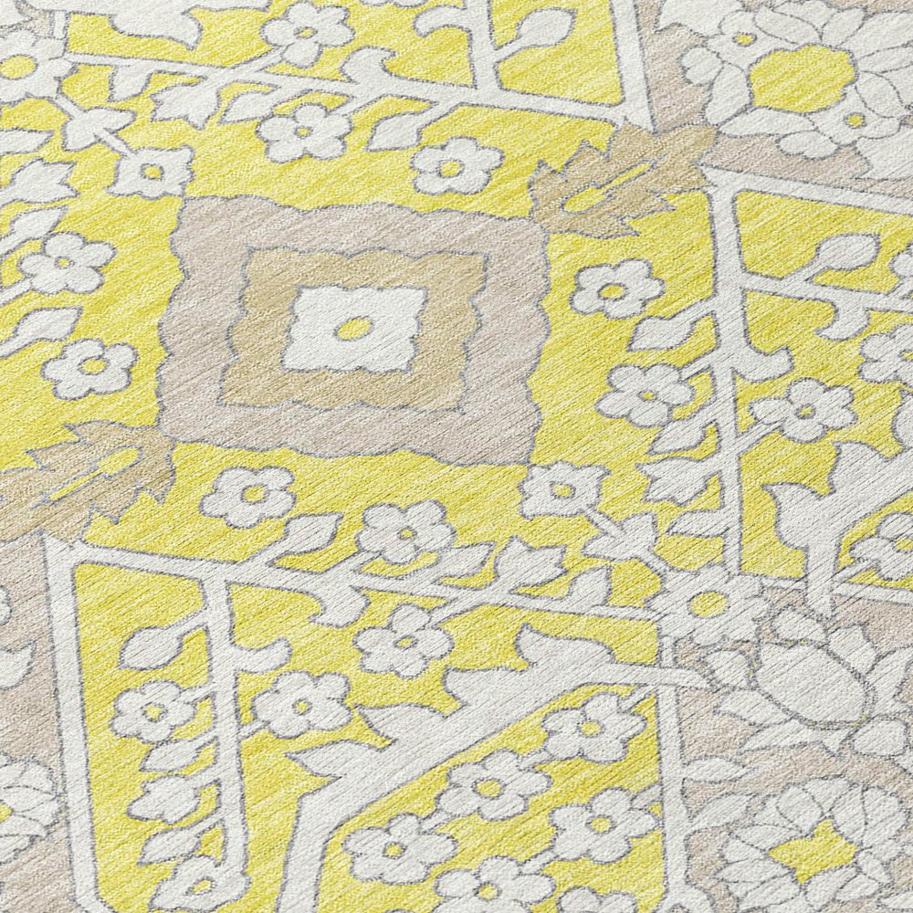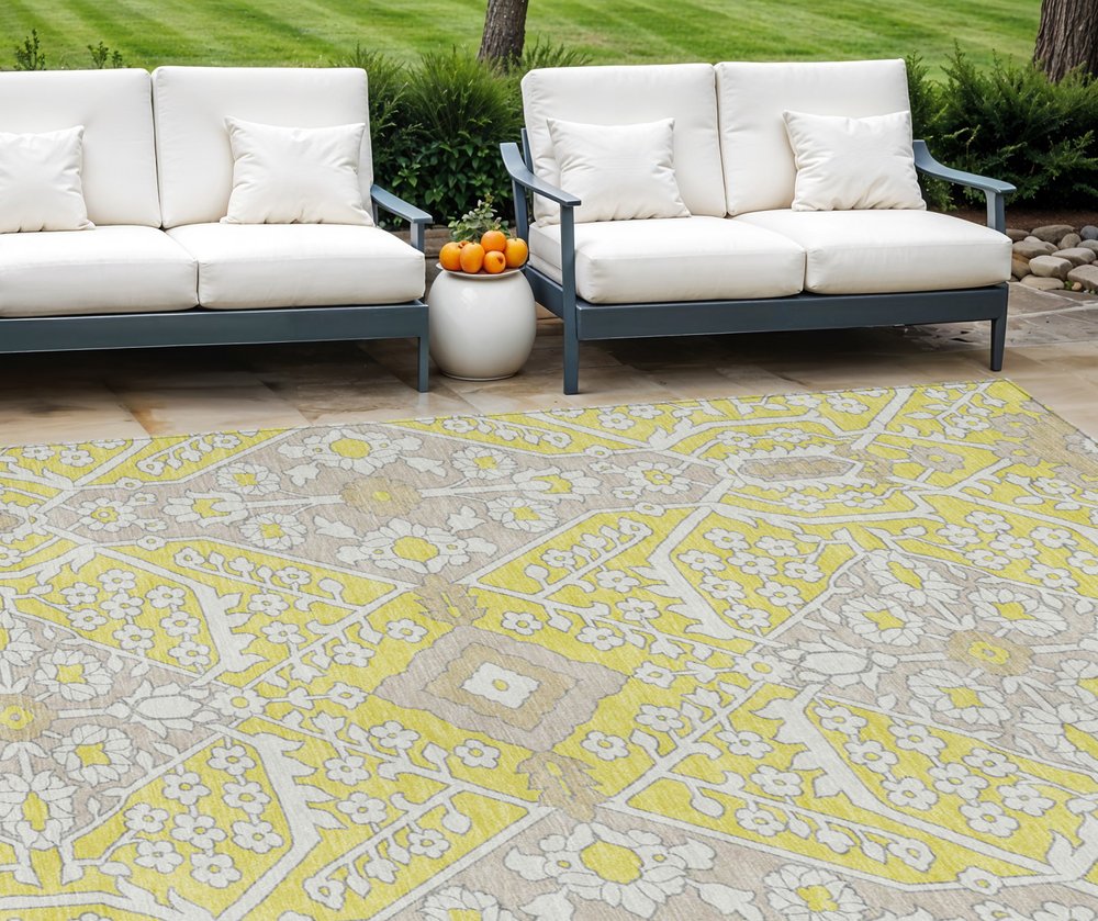 Add great coloration and comfortable texture to your space with this 9-foot x 12-foot yellow ivory and beige floral washable indoor outdoor area rug. This rectangle shaped rug features a floral design that will work well both indoors or out. A classic shape marries with good looking design for your living room, hall, bedroom, porch, patio, or poolside. Ideal for outdoor spaces or high traffic areas with kids and pets, this rug is made from heavy duty polyester that is stain resistant to help repel water, dirt, and stains. Versatile in use, durable, and easy to maintain, this rug is an ideal solution to add a decorative and inviting touch to your indoor or outdoor space. 108-inch h x 144-inch w x 0.19-inch d.