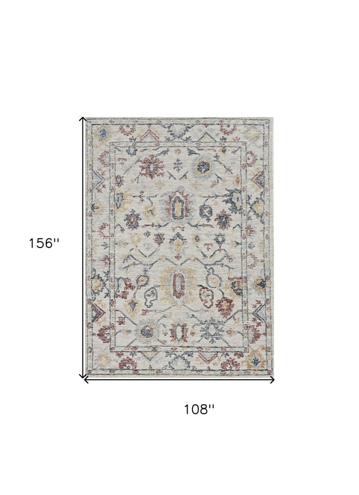 9' X 13' Ivory Gray And Red Wool Medallion Hand Tufted Area Rug