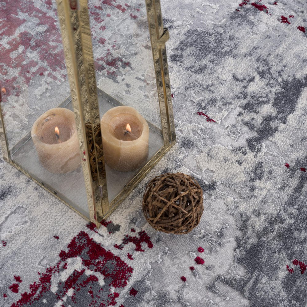 Embracing a fashion-forward palette in distressed abstract patterns, this Red and Gray Modern Abstract Area Rug will bring a sophisticated edge to your contemporary living space. The chaotic blend of gray and ivory with hints of wine-red patches speaks of modern styling with a vintage vibe. Made in Turkey, this rug is bound to last for ages as it incorporates 100% high-grade polypropylene in the making that ensures enhanced stain resistance and low maintenance. The medium pile construction gives a textured surface for visual appeal and a soft underfoot while the refined border completes the look. It’s time to give your home a stylish update with this area rug that is super versatile to fit in any area of your interior. 150” x 110” x 0.8”