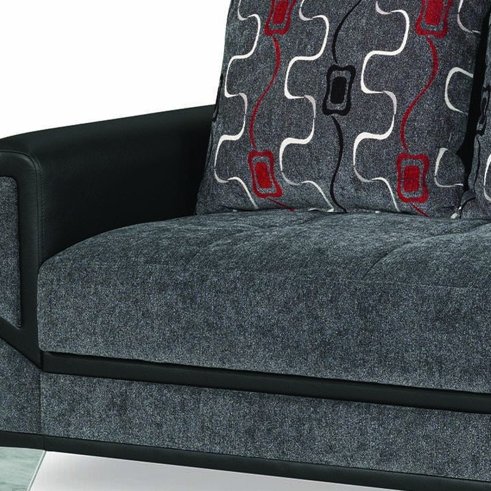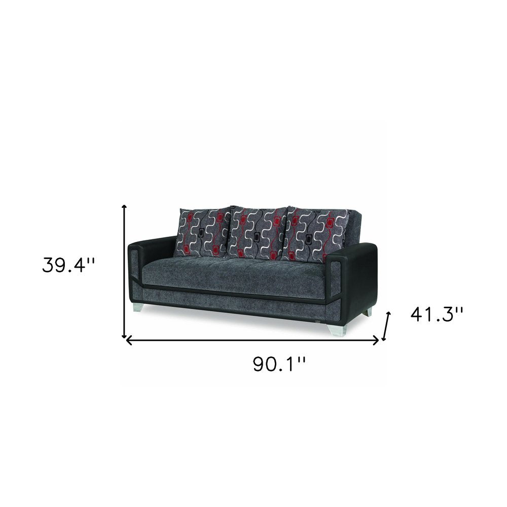 90" Gray Chenille Convertible Futon Sleeper Sofa And Toss Pillows With Storage