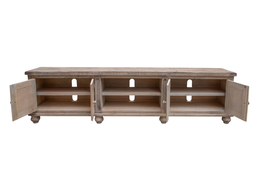 93" Desert Sand Solid Wood Cabinet Enclosed Storage Distressed TV Stand
