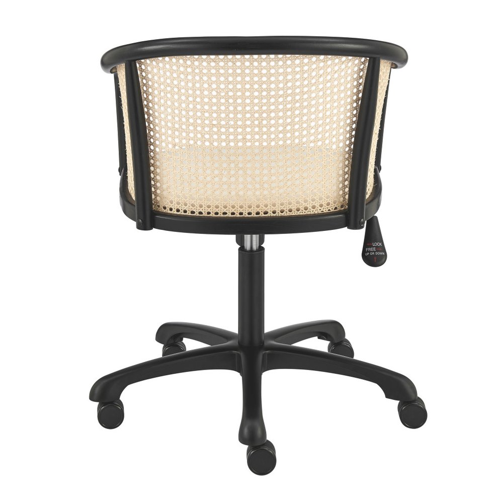 Beige and Black Solid Wood Steel And Cane Rattan Adjustable Swivel Rolling Office Chair