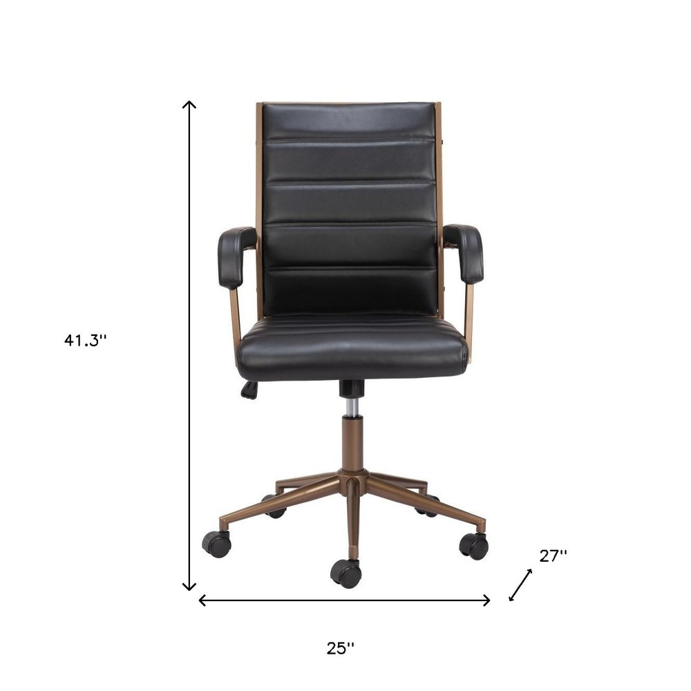 Black and Bronze Adjustable Height Faux Leather Swivel Rolling Office Chair
