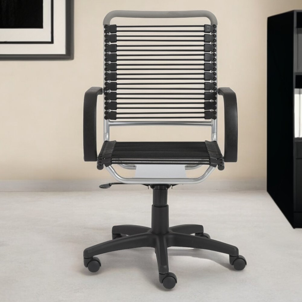 Black and Silver Adjustable Swivel Bungee Rolling Office Chair