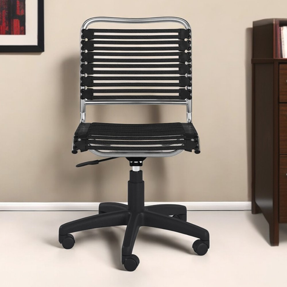 Black and Silver Adjustable Swivel Bungee Rolling Office Chair