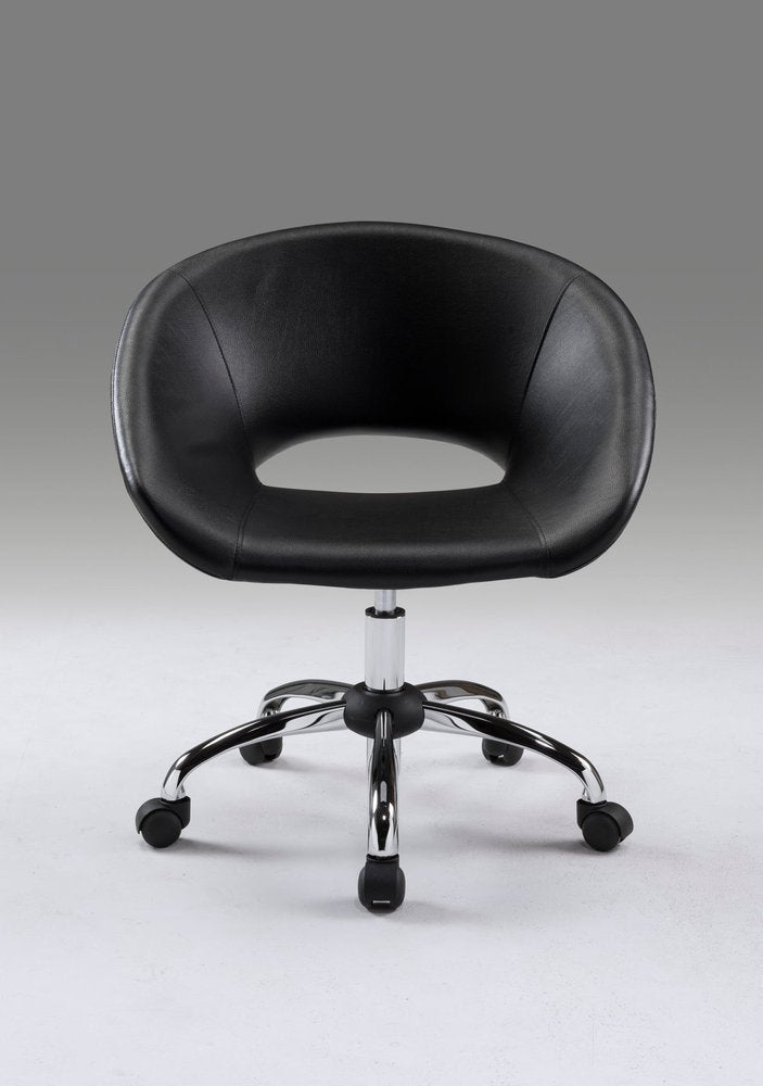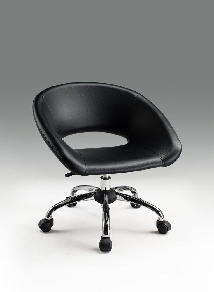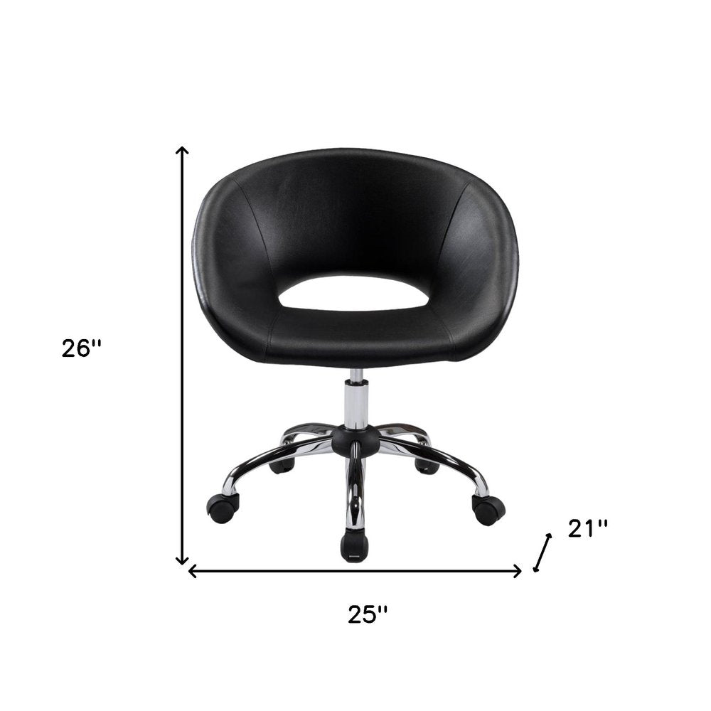 This black and silver adjustable height swivel rolling office chair is a top performer when it comes to style and support. The high-quality steel frame and construction and add durability, strength and support to the design. Features a durable faux leather back for those who are looking for a softer, but still stylish and durable seating option. Cultivate a healthier posture this chair that lets you instantly fine-tune the height of your seat according to the height of your table, so you can minimize slouching and posture-related ailments such as neck/shoulder strains and backaches. Furnish your office or home office in comfort and style with this high-quality office chair. 26-inch h x 25-inch w x 21-inch d.