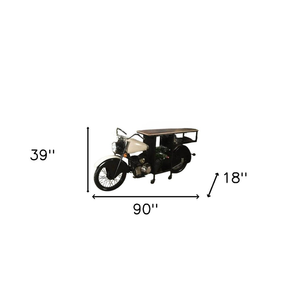 Add a touch of industrial style to your space with this rolling bar cart. Crafted with a metal frame in black and white finish, it features a sleek solid wood top in brown. The rectangular shape and included wheels make it easy to move around. Ideal for entertaining, this bar cart also offers convenient wine storage. 39-inch H x 90-inch W x 18-inch D