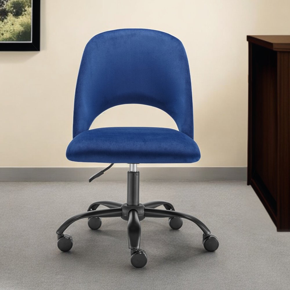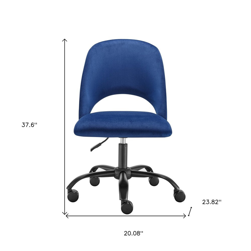 Blue And Black Steel And Velvet Adjustable Swivel Rolling Office Chair