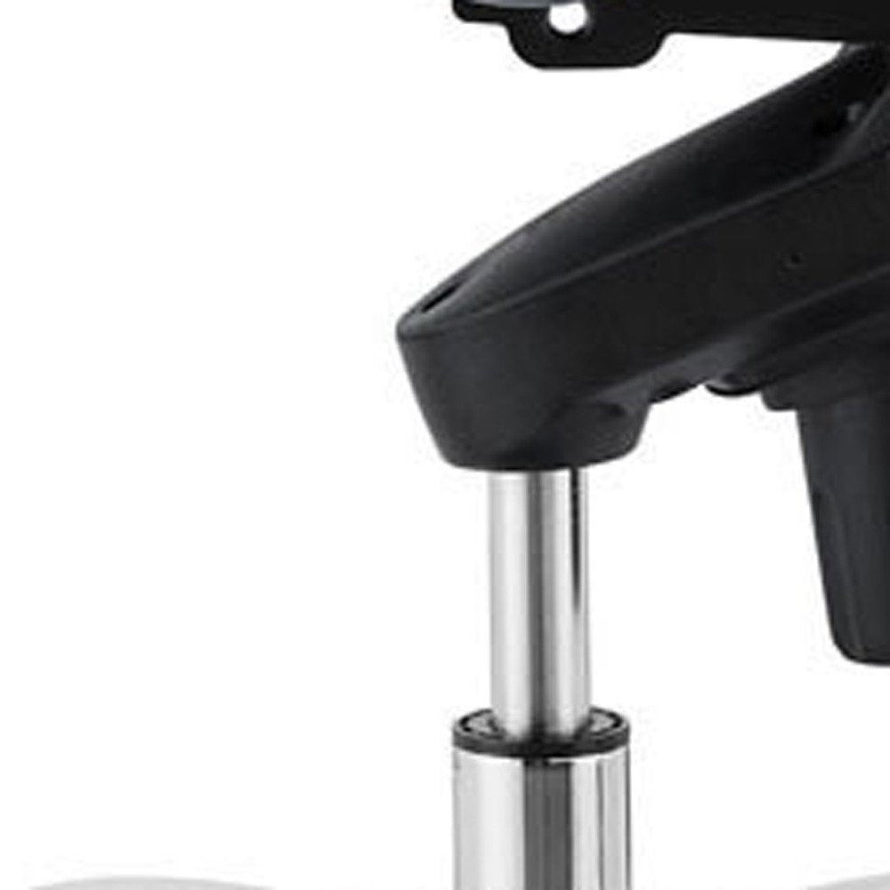 This chair features a steel frame to provide sturdiness when the chair is in use. Features a durable faux leather back for those who are looking for a softer, but still stylish and durable seating option. The seat is height adjustable, so you can customize it how you like. The design includes lumbar support, which improves healthy posture and keeps the spine in the correct alignment. Designed with a combination of practicality and good looks, this chair is just what you need to complete your office or home office. 38.19-inch H x 26.38-inch W x 25.99-inch D