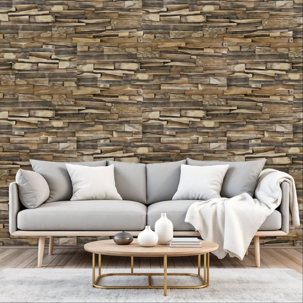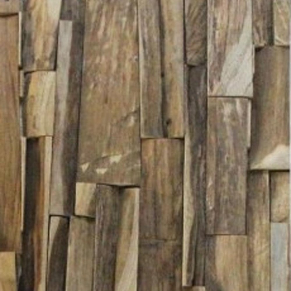 Brown 3D Embossed Geometric Teak Reclaimed Wood Decorative Wall Panels