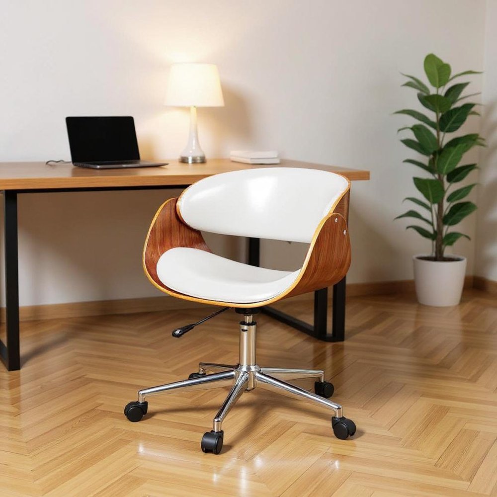 Brown White and Silver Adjustable Height Swivel Rolling Office Chair