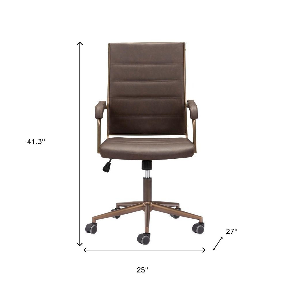 Silla de oficina giratoria con ruedas y altura ajustable en color espresso y bronce