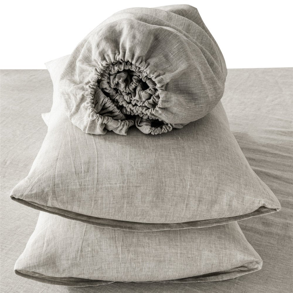 Juego de sábanas de lino rosa claro de cuatro piezas