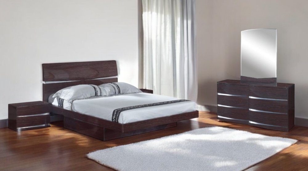 Juego de dormitorio de cuatro piezas de madera maciza marrón con espejo