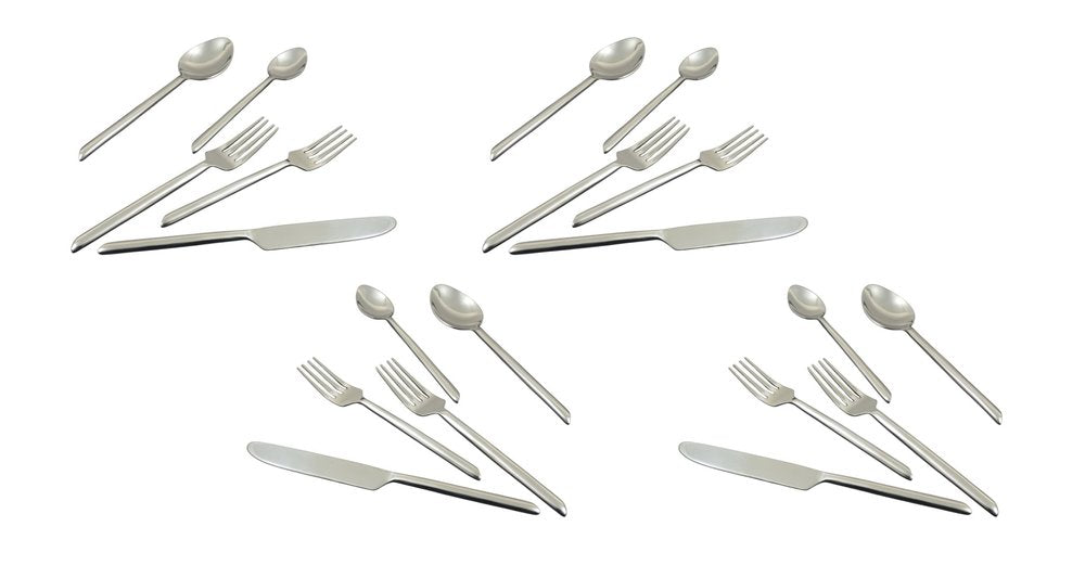 Juego de cubiertos de veinte piezas de acero inoxidable forjado a mano en plata brillante