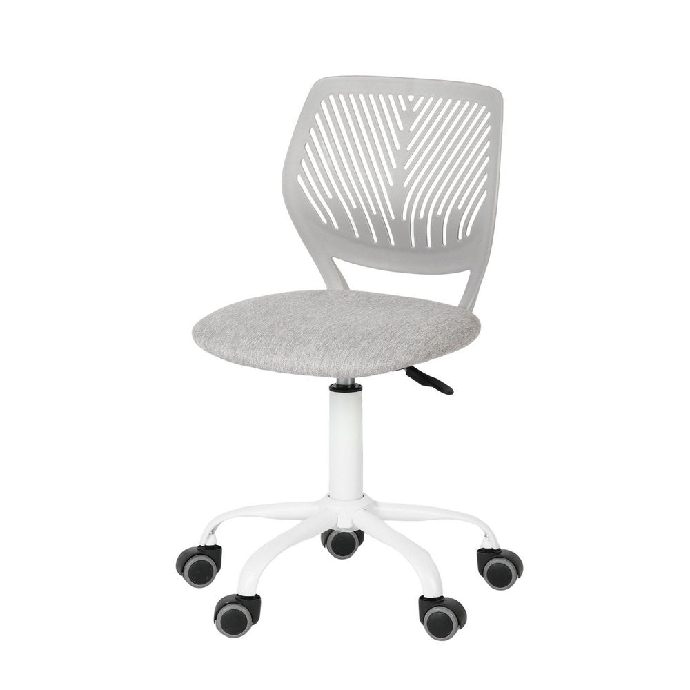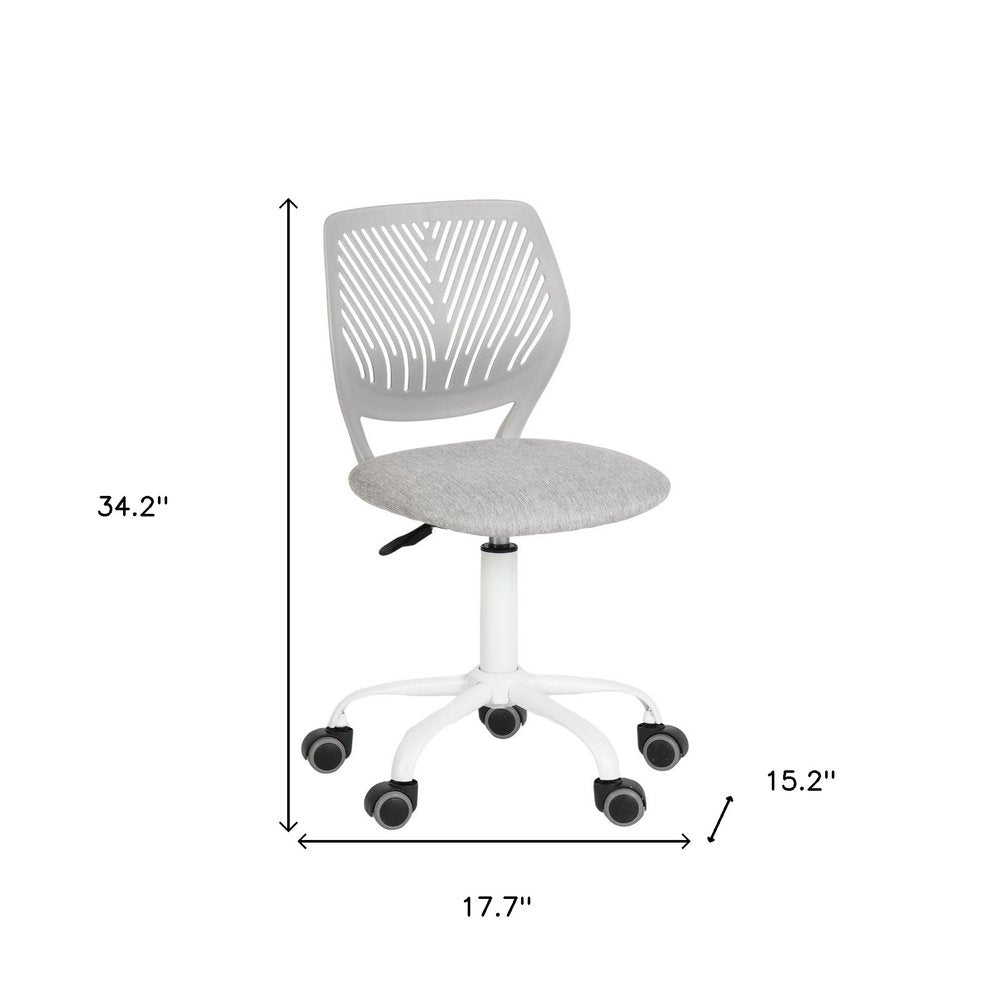 This gray and black adjustable height swivel rolling office chair is a top performer when it comes to style and support. Features a heavy-duty steel frame to provide you with years of durable use. Includes a comfy padded and upholstered seat and a ventilated mesh-like back designed for optimal air circulation and comfort. This design is height-adjustable to personally tailor your space. Designed with a combination of practicality and good looks, this chair is just what you need to complete your office or home office. 34.20-inch h x 17.70-inch w x 15.20-inch d.