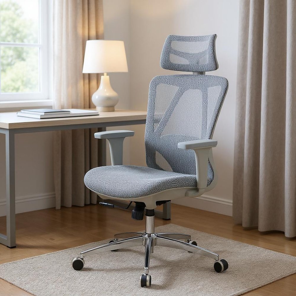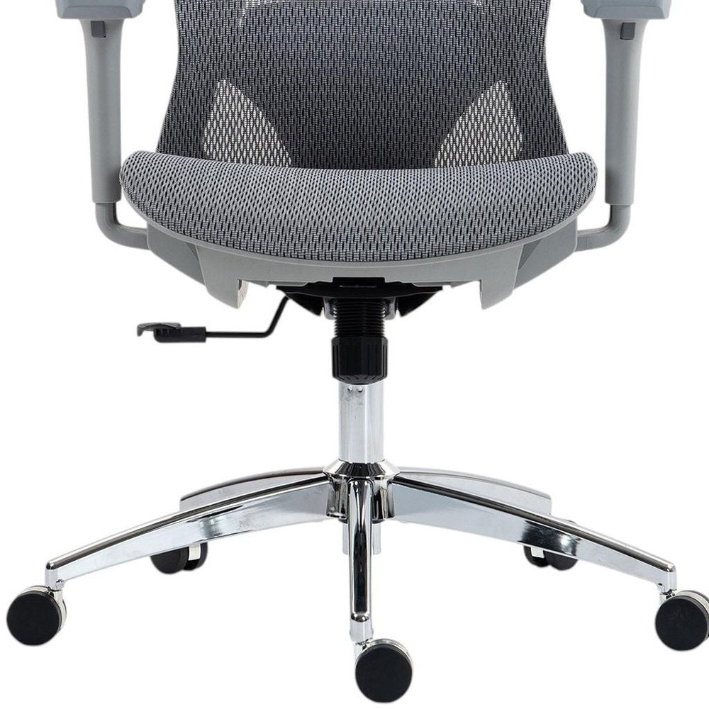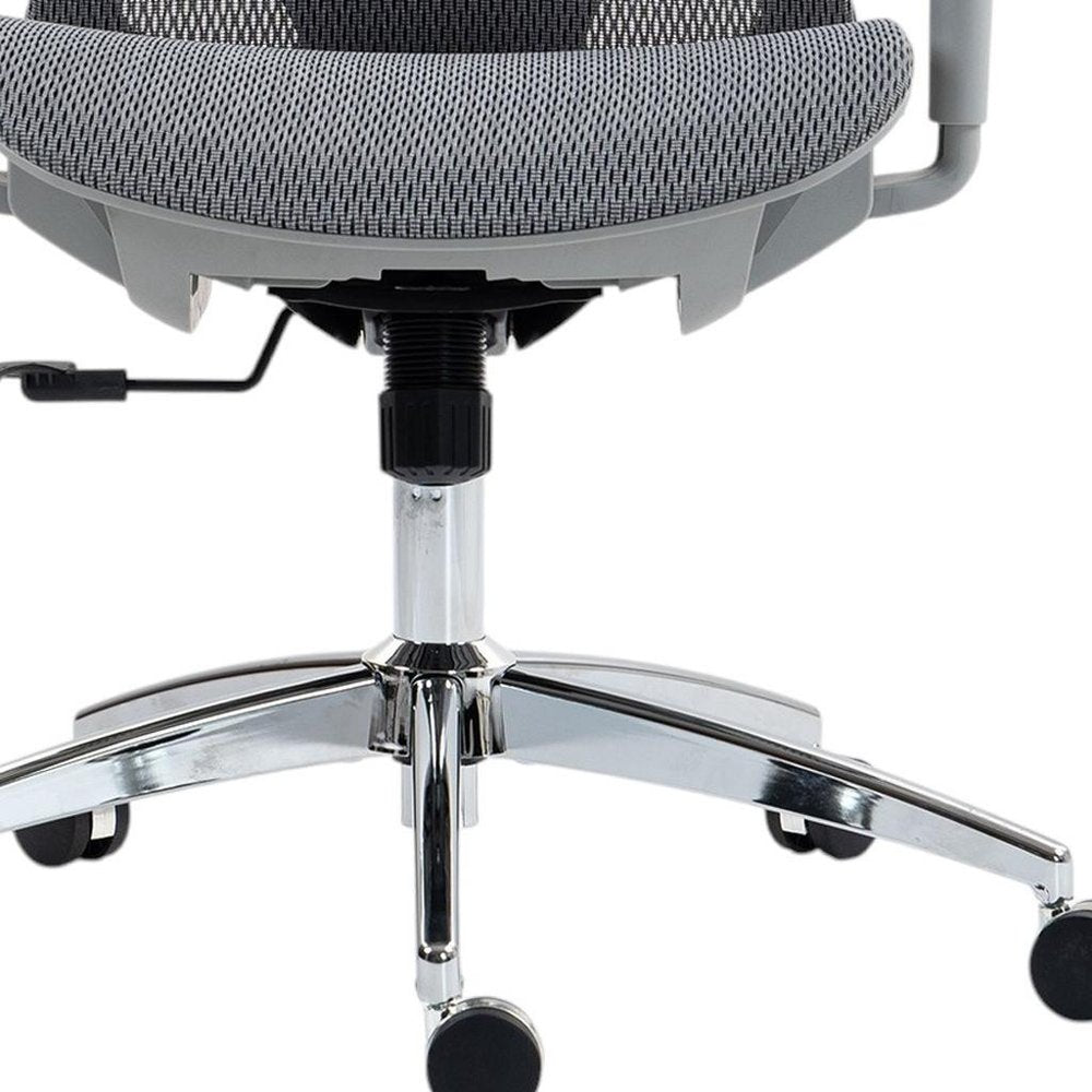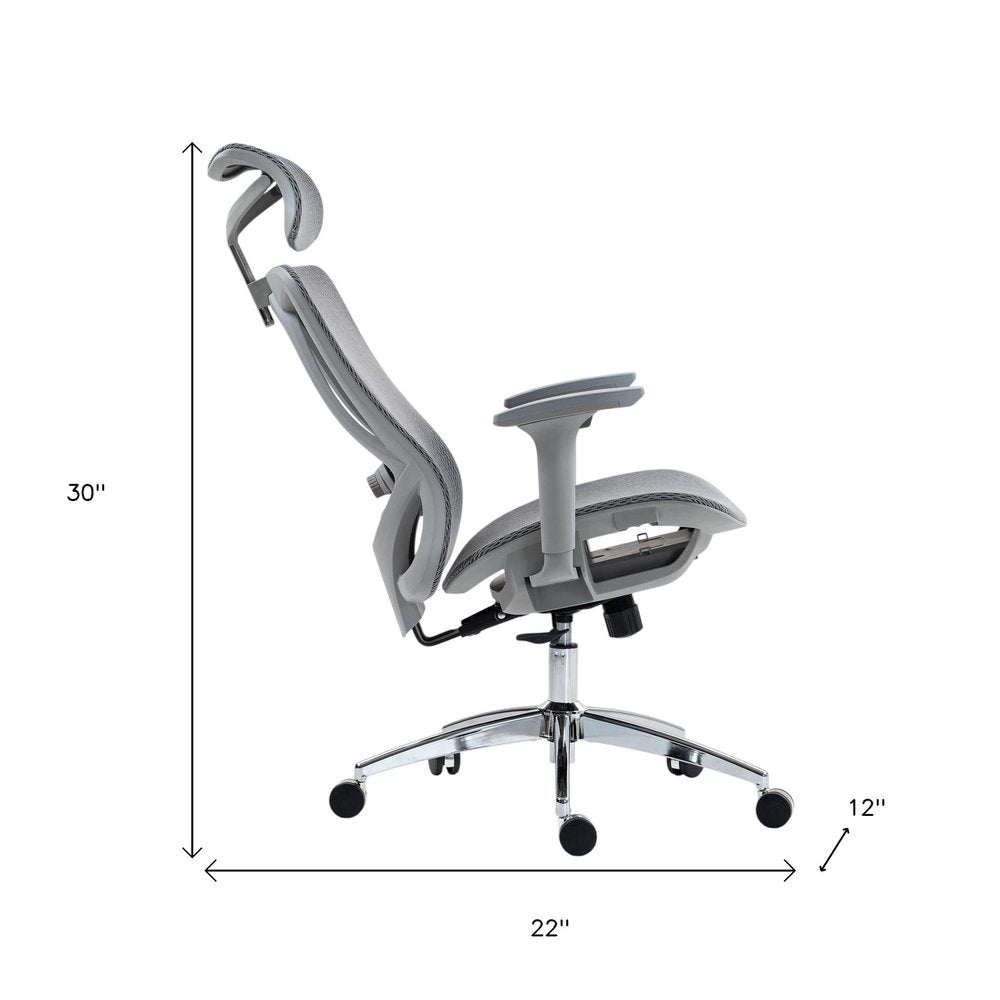 This gray and silver adjustable height swivel rolling office chair is a top performer when it comes to style and support. Ergonomic by design, this chair rolls, swivels, and even tilts. This chair features a stainless-steel frame to provide sturdiness when the chair is in use. Features adjustable lumbar support so that you're fully aligned and ensures you get maximum support when and where you need it most. Furnish your office or home office in comfort and style with this high-quality office chair. 30.00-inch h x 22.00-inch w x 12.00-inch d.