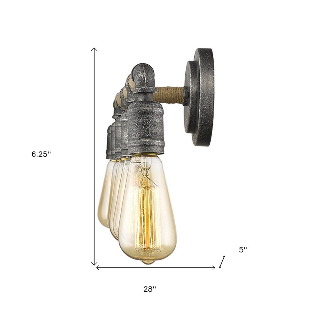 Engañosamente simple y moderno. Metal gris antiguo con conectores y enchufes de aspecto industrial. Los montantes envueltos en yute aportan color y textura.