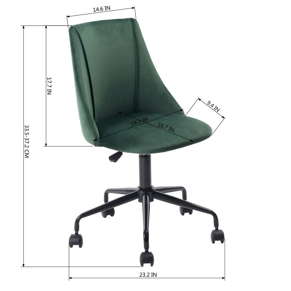 This green and black adjustable height swivel rolling office chair is a top performer when it comes to style and support. This chair features a steel frame to provide sturdiness when the chair is in use. This design is height-adjustable to personally tailor your space. Designed with a combination of practicality and good looks, this chair is just what you need to complete your office or home office. 37.20-inch h x 23.20-inch w x 16.70-inch d.