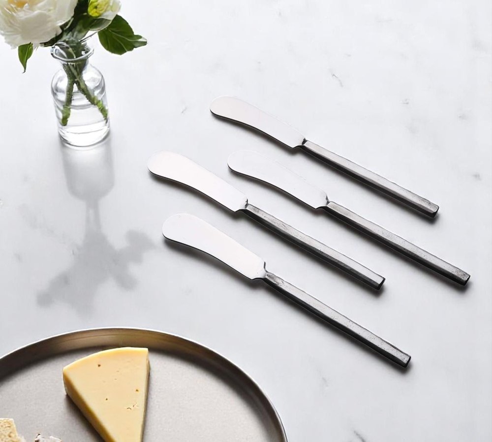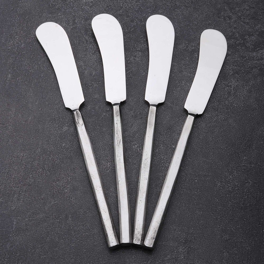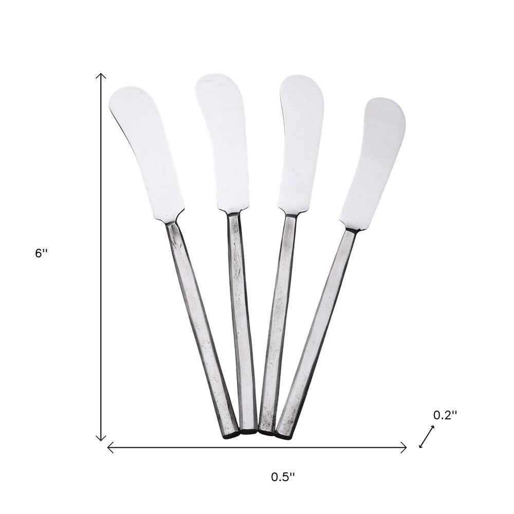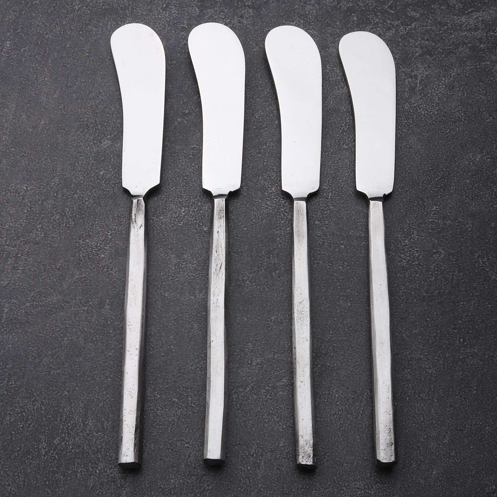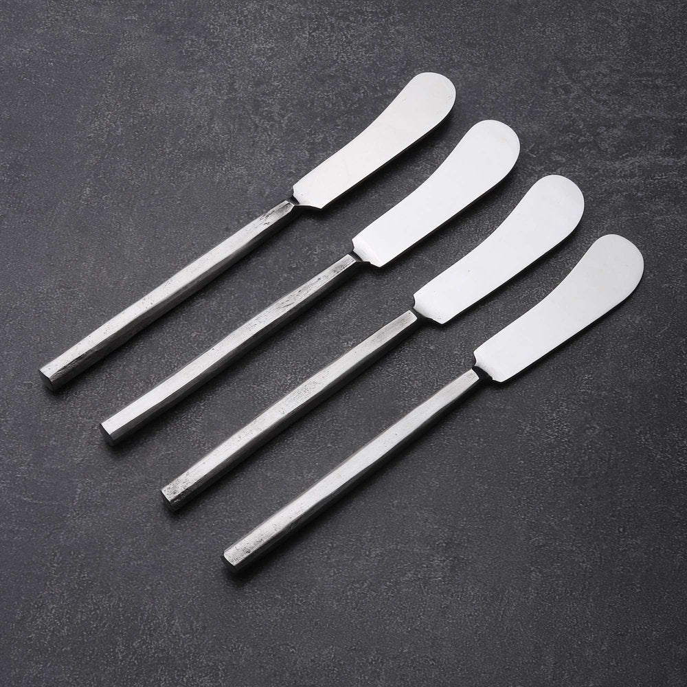 Hammered Silver Stainless Steel Four Piece Hand Forged Butter Knife