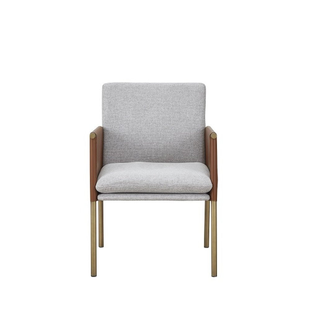 Light Gray And Antiqued Brass Upholstered Fabric Dining Arm Chair