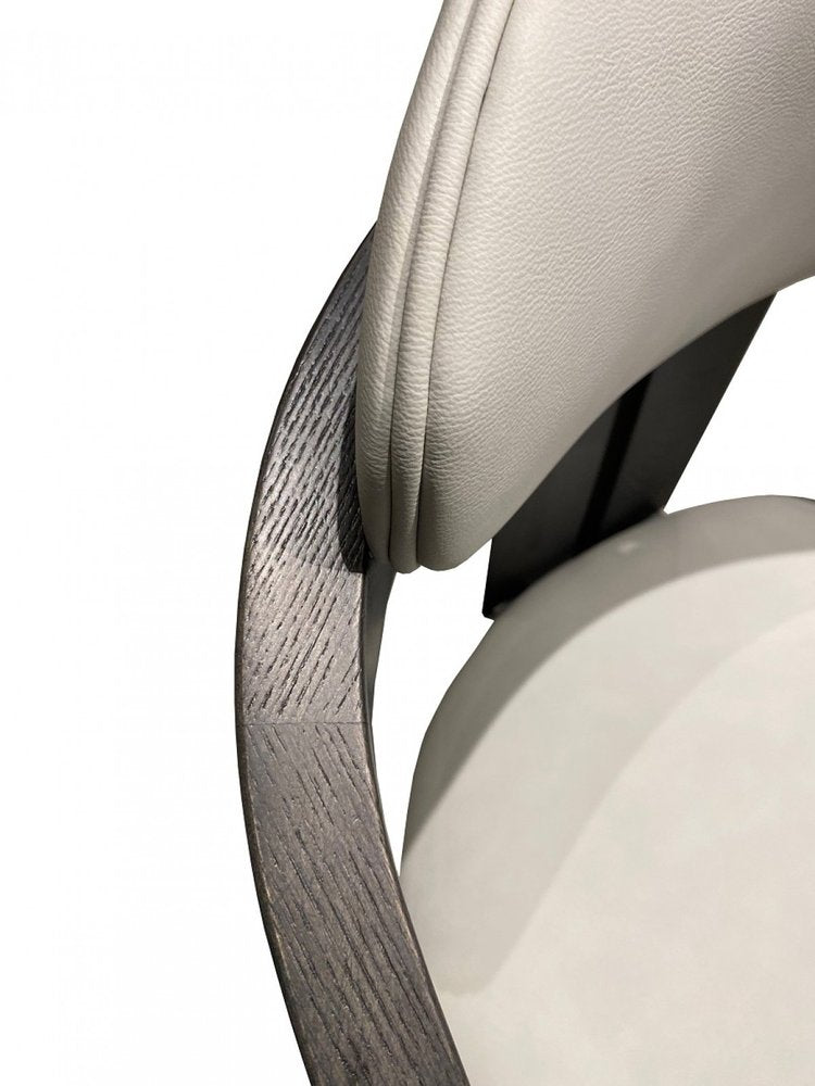 Light Gray And Dark Gray Upholstered Faux Leather Open Back Dining Arm Chair