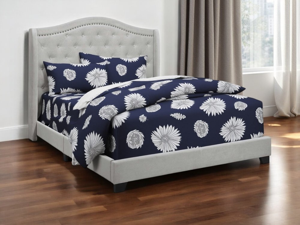 Renueva y da un toque de estilo a tu habitación con la fabulosa cama queen tapizada con capitoné de madera gris claro y gris, con ribete de tachuelas. Esta cama, parcialmente tapizada, está revestida con un hermoso capitoné gris 100% poliéster con botones, y ribete de tachuelas para darle un toque único y sofisticado a tu habitación. Pasamos mucho tiempo en nuestros dormitorios, por lo que la calidad de la artesanía y la estética son vitales. Diseñada para durar, esta pieza no solo luce bien, sino que refleja una mano de obra de primera calidad de principio a fin. Esta cama te ayudará a crear un ambiente tranquilo que te proporcionará un sueño reparador durante años. 142 cm de alto x 168 cm de ancho x 220 cm de profundidad.