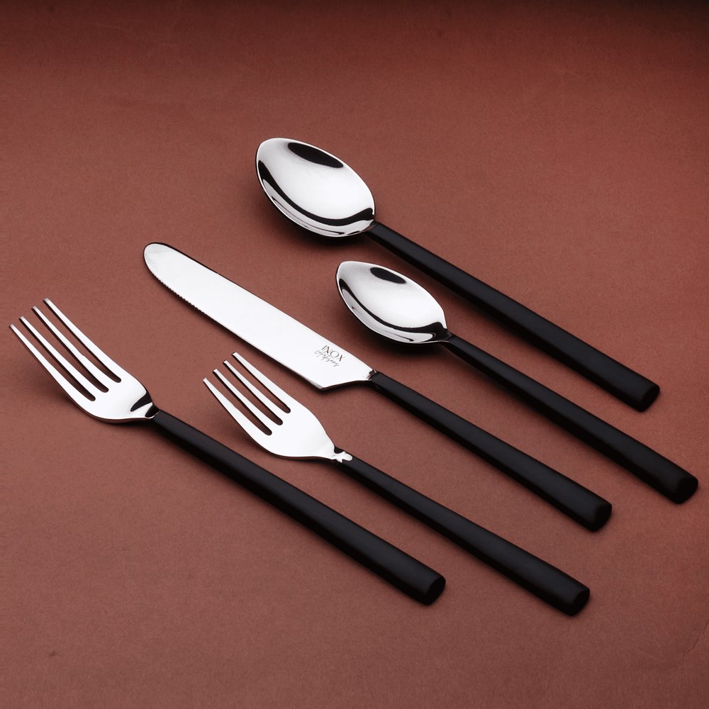Juego de cubiertos de veinte piezas forjados a mano en acero inoxidable negro mate
