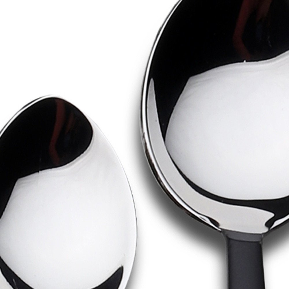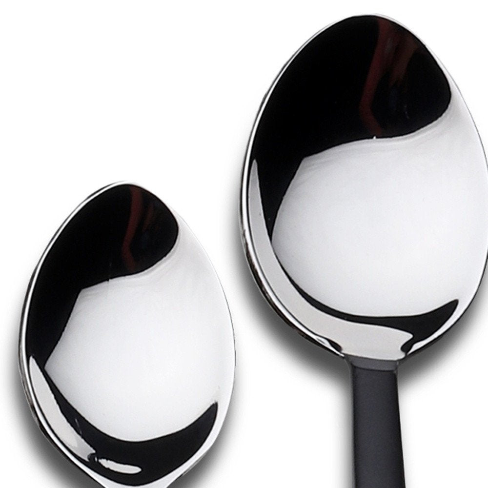 El juego de cubiertos de veinte piezas de acero inoxidable negro mate, forjado a mano, ofrece un elegante complemento para cualquier experiencia gastronómica. Este completo juego de cubiertos incluye 20 piezas, con capacidad para cuatro personas, garantizando un servicio perfecto en cada comida. El elegante diseño de mango cuadrado añade un toque moderno a su mesa. Fabricado en acero inoxidable duradero mediante un método de construcción forjado a mano, este juego combina estética y funcionalidad. Cada pieza es apta para lavavajillas comercial, lo que facilita la limpieza después de reuniones o para el uso diario. Incluye cuatro tenedores, cuchillos, tenedores de ensalada, cucharillas y cucharas soperas, y está diseñado para satisfacer todas sus necesidades culinarias con un elegante acabado negro mate. 20 cm de alto x 1,27 cm de ancho x 0,5 cm de profundidad.