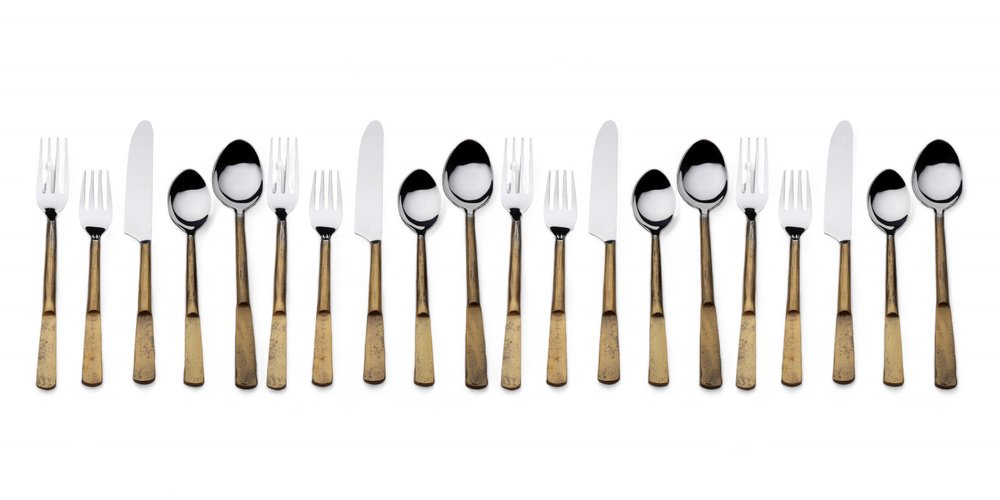 Juego de cubiertos de veinte piezas de acero inoxidable forjado a mano en oro mate
