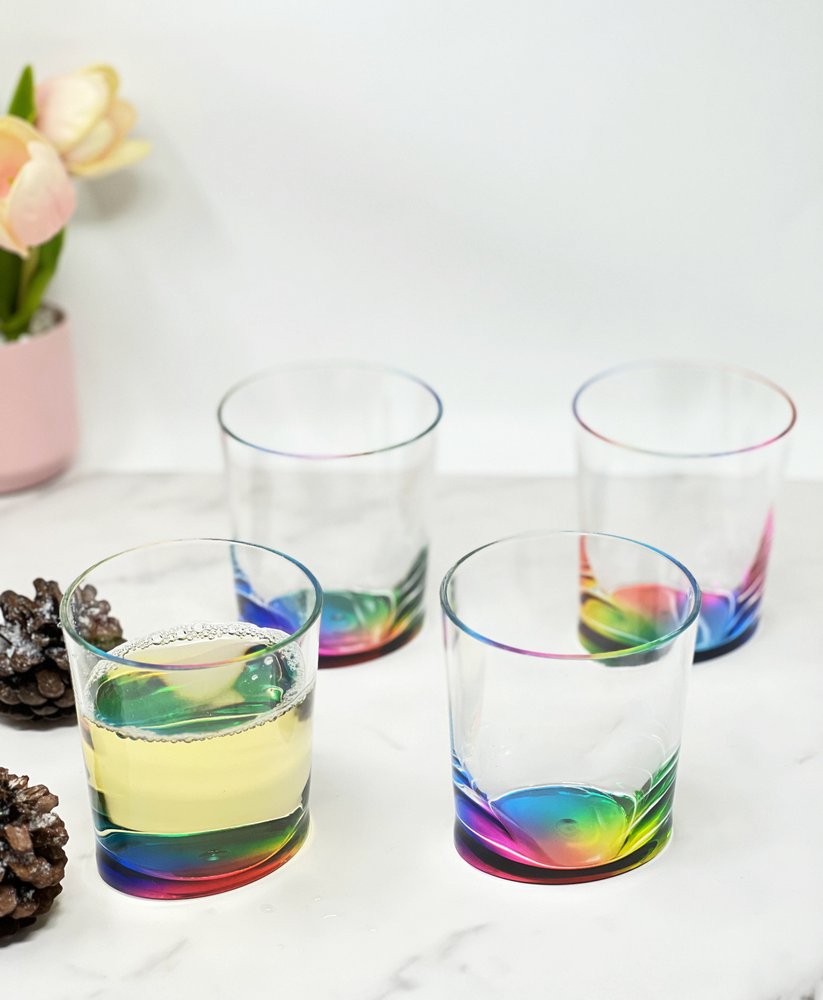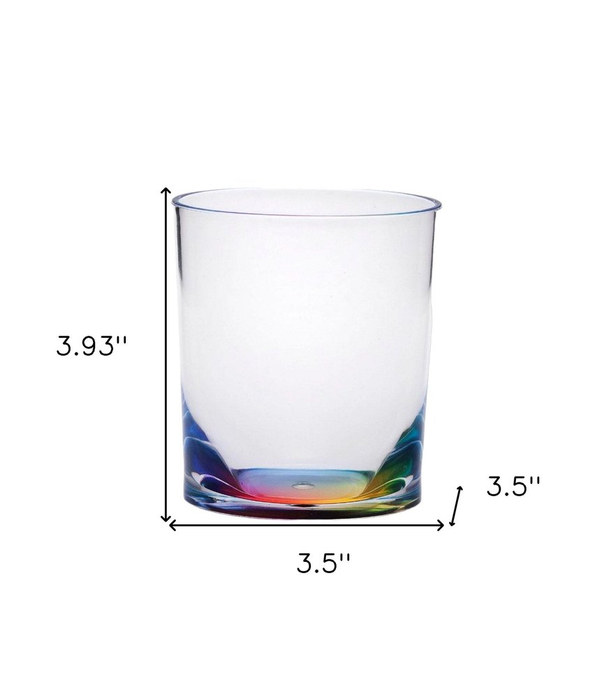 The set of four blue acrylic stemless whiskey glass is a good-looking glass to use for your favorite whiskey but can also be used for most any other drink or beverage. Elevate any occasion with a set of stunning stemware that is as functional as it is beautiful. The stemless design not only looks casually elegant, but many agree it makes for a more comfortable and relaxed grip on your favorite beverage. Includes a decorative clear rim to enhance the look and elegance of the glass. The addition of a machine embossed design gives this glass special character and dimension. Add iconic style to your setting with this good-looking solid color pattern. The smooth non-texture of this surface will feel elegant and sleek in your hand. Whatever your beverage preference, you are certain to enjoy the enhanced flavor and taste that comes with consuming from the proper vessel. 3.93-inch H x 3.5-inch W x 3.5-inch D