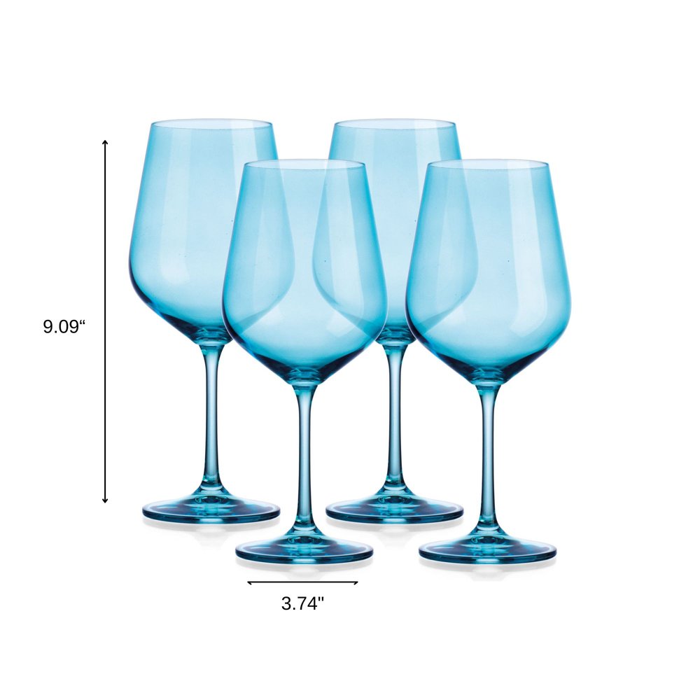 Treat yourself to your favorite vino with the simple sophistication of this set of four blue crystal balloon bowl stemmed red wine glass. Both stylish and practical, this comes as a multi piece glassware set so you don’t have to drink alone. The graceful stem adds an air of sophistication to your favorite beverage. Includes a decorative clear rim to enhance the look and elegance of the glass. Add iconic style to your setting with this good-looking solid color pattern. Simplicity at its finest, this smooth surface is refined without texture. Sipping from the right glass can make the difference between a drink and an amazing experience. 9.09-inch H x 3.74-inch W x 3.74-inch D