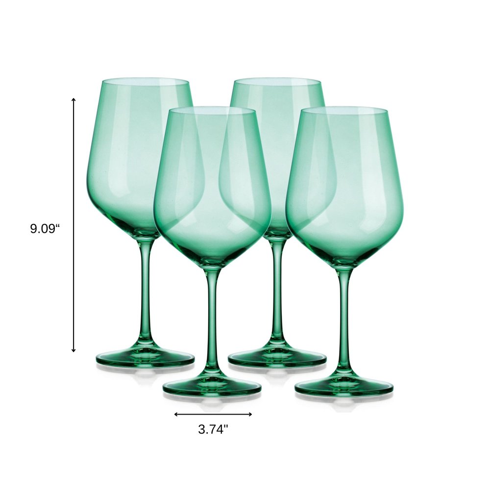 Disfrute del aroma y sabor intensos de su vino con este juego de cuatro copas de vino tinto con tallo de cristal verde. Elegante y práctico, este juego de cristalería multipiezas le permitirá disfrutar de una copa sin compañía. Haga que cada día o cualquier ocasión sea especial con el toque de sofisticación que solo una copa con tallo puede ofrecer. Incluye un borde transparente decorativo que realza la apariencia y la elegancia de la copa. Disfrute con estilo con este atractivo y llamativo diseño de color sólido. Simplicidad en su máxima expresión: esta superficie lisa se refina sin textura. Sea cual sea su bebida preferida, sin duda disfrutará del sabor y el gusto realzados que ofrece beberla en el recipiente adecuado. 23 cm de alto x 9,5 cm de ancho x 9,5 cm de profundidad.