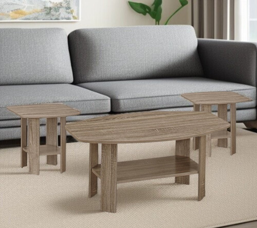 This coffee table set is just what you need to get your living room or lounge area set up and ready. This table is made from manufactured wood in a taupe color throughout the base and top. Includes a single shelf for handy storage or display space. This classic rectangular table will be a great accent in any room it has a fresh design that will definitely breathe some fresh air into your interior. This coffee table is the sturdy, reliable and stylish answer to your living room needs. 16.25-inch H x 35.5-inch W x 21.5-inch D