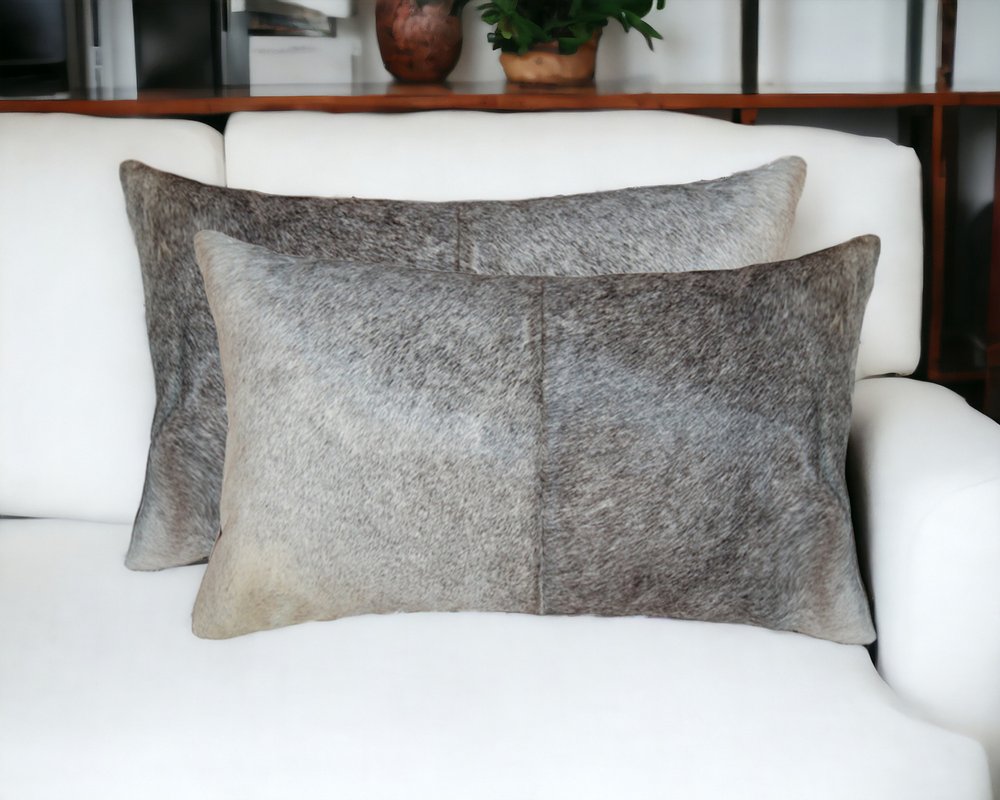 Set of Two 12" X 20" Gray Cowhide Throw Pillow
